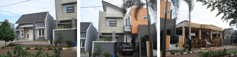 Namun, lagi-lagi saya kecewa oleh pengembangnya. Ternyata, walaupun sudah mengklaim dirinya sebagai pemukiman real-estate, tapi tetap saja ada adu wajah rumah yang membuat koridor jalan yang tadinya rapi dengan rumah-rumah bermodel serupa, rusak oleh sempilan langgam-langgam yang diterapkan tidak pada tempatnya. Beberapa rumah bahkan di boulevard utama, berlanggam sangat menyimpang dari langgam standar ini. Rasanya aneh bukan melihat bangunan bergaya klasik, mediteran, atau modern minimalis, tiba-tiba muncul di jalan utama yang tadinya berirama minimalis tropis ini.