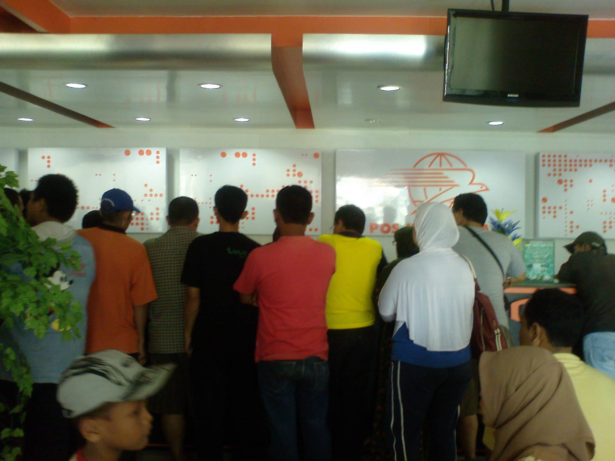 Ah, kantor pos. Pelayanan yang sebenarnya bisa dimaksimalkan itu ternyata hanya bisa sampai tingkat standar saja. Bahkan untuk mengatur disiplin pun kurang bisa. Mungkin pegawainya juga tidak bisa disiplin, sehingga tidak bisa menertibkan pelanggan. Dan sudah tahu bahwa setiap tanggal 20 akan ramai, tapi tidak meningkatkan jumlah pelayanan. Sayang, padahal pasar pelanggan mereka begitu besar, yang bisa menjangkau hingga pedesaan di seluruh Indonesia. Masih menganggap bahwa pelanggan yang butuh mereka, tidak takut ditinggalkan. Sedikit lagi, Kantor Pos.