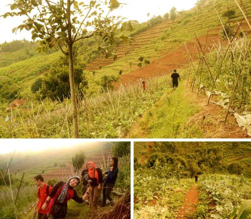 Jika ingin mencoba melakukan penjelajahan kecil, bisa berkeliling melintasi padang rumput di depan Sitinggil dan dilanjutkan menembus hutan tropis yang agak pekat selama 10 menit, lalu akan ditemukan ladang cabai dan tomat yang disusun serupa terasering. Semakin menuruni lembah akan ditemukan tanaman kol, brokoli, bahkan kacang panjang. Sebuah sungai mungil dengan jembatan bambu akan ditemui pada ujung lembah, tempat bisa beristirahat sejenak, menyeberangi dengan melompat. Perjalanan kembali ke atas melalui tengah kebun singkong dan diakhiri dengan savana luas yang harus ditempuh dengan mendaki. Keringat yang dikeluarkan setara dengan kegembiraan yang mengalir ketika tiba kembali di halaman.