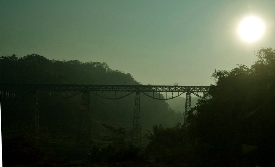 Ketika pindah ke Bandung, ternyata aku agak kehilangan dengan deru kereta itu. Apalagi jalanan Bandung-Cirebon ke rumah nenek tak ada jalur kereta seperti dari Semarang, hanya jalan darat melalui tepi tebing cadas pangeran Sumedang. Hampir tiap bulan melalui bukit padas itu. Namun karena setiap liburan sekolah aku diminta untuk datang ke Tulung Agung, jadi senang sekali. Karena itu berarti kami akan naik kereta lama sekali. Aku ingat, dulu naik Mutiara Selatan dari Bandung – Surabaya turun di Kertosono, baru disambung bis ke rumah eyang. Perjalanan berangkatnya tak terlalu istimewa, karena malam hari. Namun, perjalanan kembalinya dari sana, dengan kereta yang sama Surabaya – Bandung via Kertosono, dengan jadwal tiba yang selalu terlambat, selalu mengesankan. Sekitar pukul enam pagi kereta baru masuk daerah Tatar Pasundan, seingatku daerah Ciamis, Tasikmalaya, Garut. Itulah jalur kereta terindah di Indonesia yang pernah kulintasi (yang kedua adalah jalur Argo Parahyangan Jakarta – Bandung). Ketika lewat sekitar Tasikmalaya, kereta sudah mulai mendaki dan berkelok, memasuki terowongan, melintasi jembatan. Saat itu ayah akan ribut menyuruh aku dan adikku untuk melongok keluar jendela, “Lihat! Kepala keretanya kelihatan!!” Kami pun mengeluarkan kepala dan memandang kelokan yang membuat kami bisa melihat lokomotif dan buntut kereta sekaligus. Hembus angin pagi yang menampar-nampar muka tak kami hiraukan. Itulah pemandangan terindah, lokomotif kereta berwarna hijau kuning merah dengan latar belakang pegunungan yang hijau, sawah menguning, sungai yang mengalir kecoklatan dengan tebing-tebing di sampingnya, jembatan besi yang membuat suara mendesis ketika kereta kami melintas di atasnya, rumah-rumah penduduk yang terlihat berlarian, pohon, hutan, terowongan, uh! Tak terbayangkan betapa bahagianya setiap aku mengalami momen ini setiap tahunnya.
