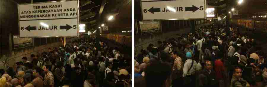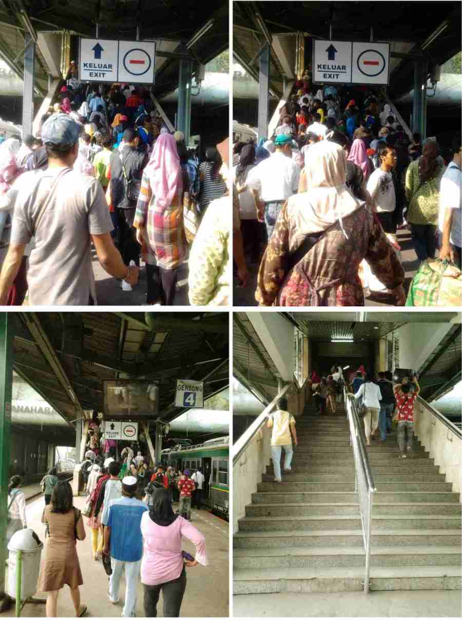 di peron, turun dari kereta, semua bergegas menaiki tangga menuju lobby stasiun.