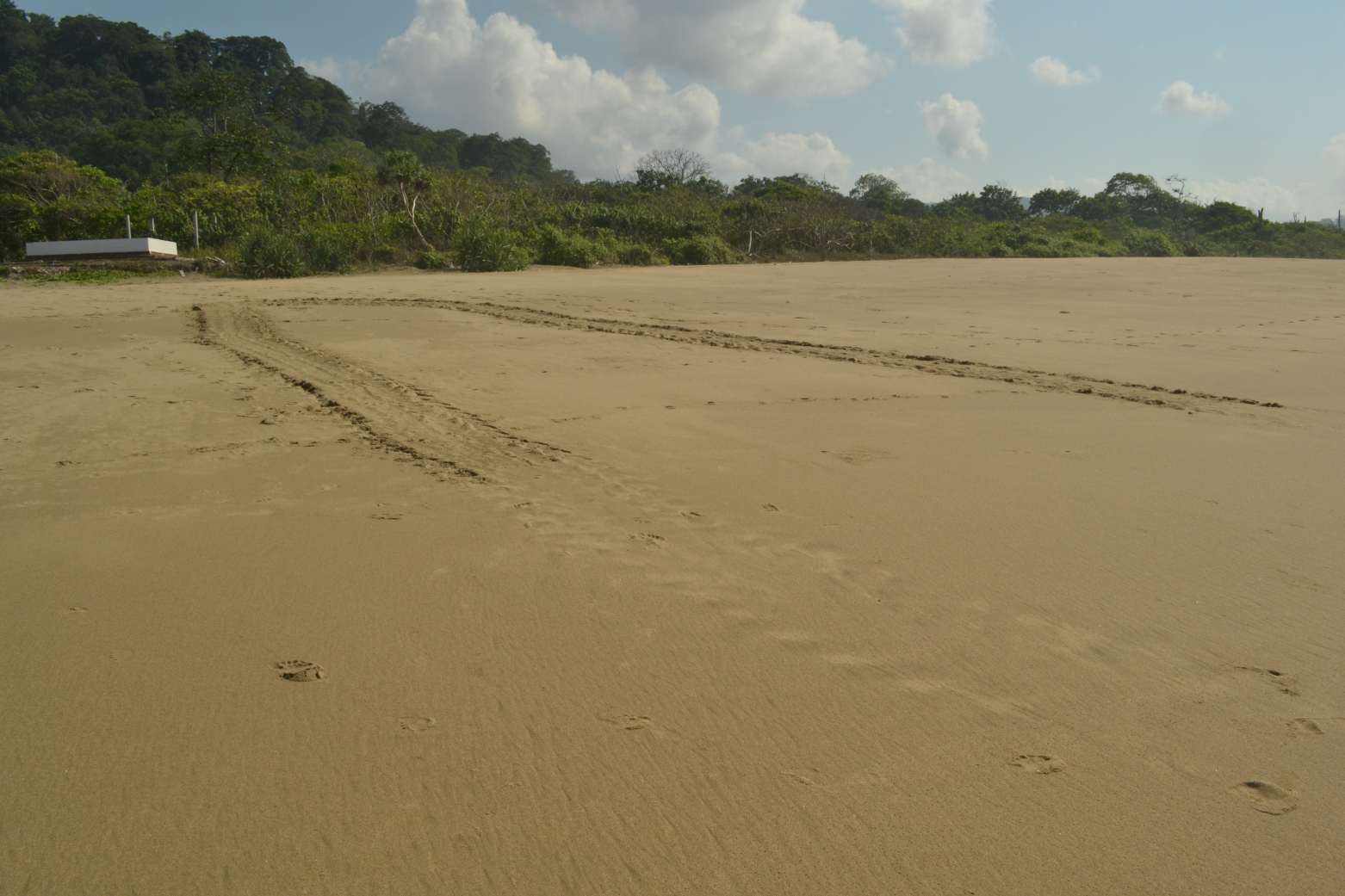 Tak lama dari walkie talkie terdengar bahwa ada penampakan penyu di sektor pantai yang dijaga Pak Wartono, ranger kepala di pantai Sukamade. Kami berjalan kembali ke arah datang bersama dua ranger penyu itu sambil masih mengobrol dengan mereka. Biasanya mereka tinggal di Sukamade seminggu kemudian kembali ke Jember untuk beristirahat 2 hari, lalu kembali lagi. Kami ditunjukkan jejak penyu yang berupa lintasan melengkung dari laut ke darat dan ke laut lagi. Tak lama kami berjalan, kami bertemu Pak Wartono. Ia mengabar kalau di sektor barat ada penyu yang terlihat naik ke darat.