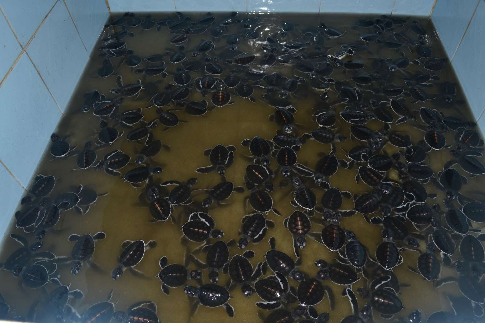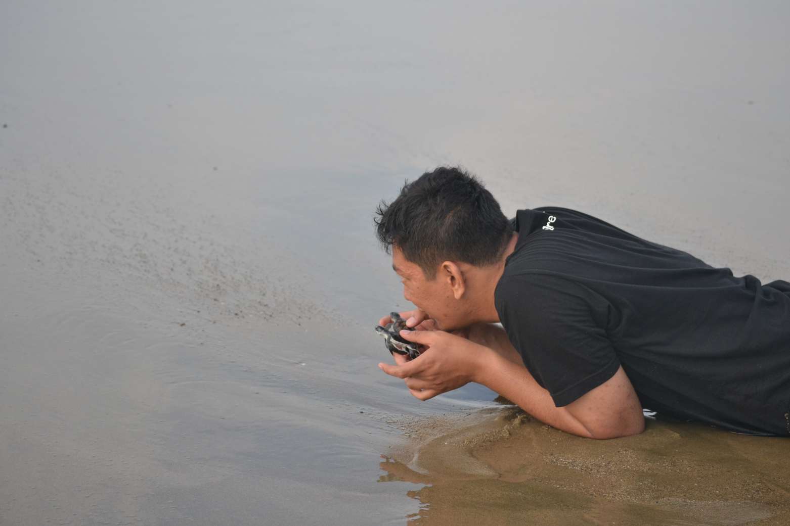 “Di sini banyak babi hutan atau nelayan bertangan jahil yang suka mencuri telur-telur penyu. Karena itu kami selamatkan dengan membawa ke penangkaran. Sekali bertelur bisa 100 telur, namun kemungkinan hidupnya kecil sekali. Setelah ada penangkaran, jumlah persentase telur penyu yang berhasil ditetaskan menjadi bertambah.”