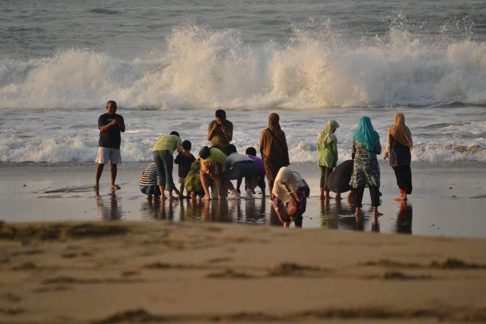 Ya sudahlah, sambil menunggu masakan bisa dimakan, aku, Adhib, Herdian dan Sansan memutuskan untuk berjalan ke pantai. Sesudah membereskan barang-barang kami di kamar yang tak ber-AC itu, kami berjalan ramai-ramai ke pantai bersama dengan serombongan penumpang Toyota Land Cruiser yang mengikuti mobil kami sejak Pesanggaran.