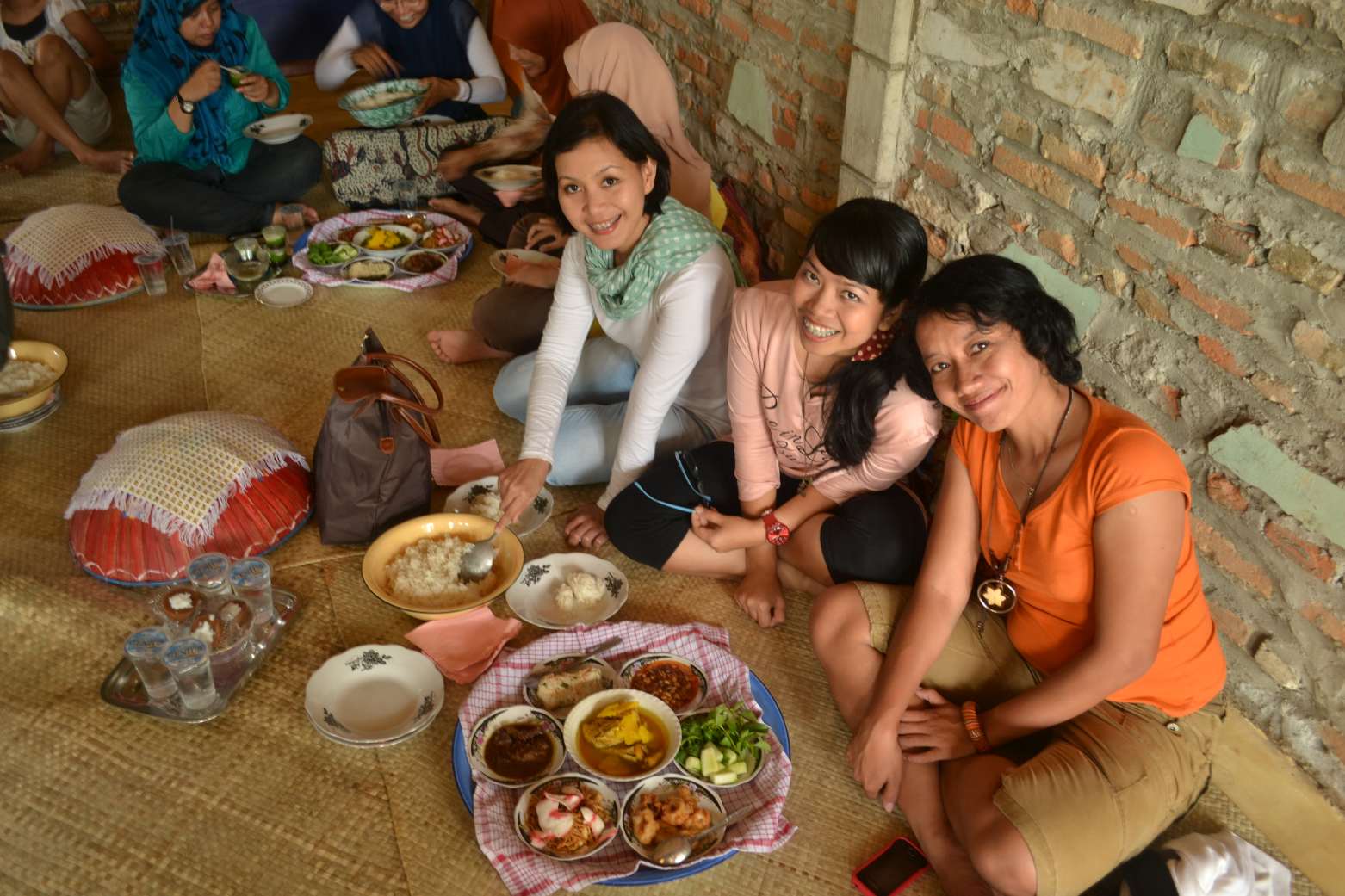 Usai bertemu Andrea, di sebuah rumah di samping museum siang itu juga kami dijamu dengan makan siang bersama ala Belitong. Setiap set untuk 4 orang, dengan urutan makan harus yang lebih tua dulu yang mengambil makanannya. Ada semacam gulai ikan yang lezat, juga penganan kecil dari kelapa yang enak disantap. Makanan khas Belitong ini bercitarasa gurih, dan kami yang memang sedang lapar-laparnya, ditambah gerimis, membuat tak lama dimakan langsung habis.