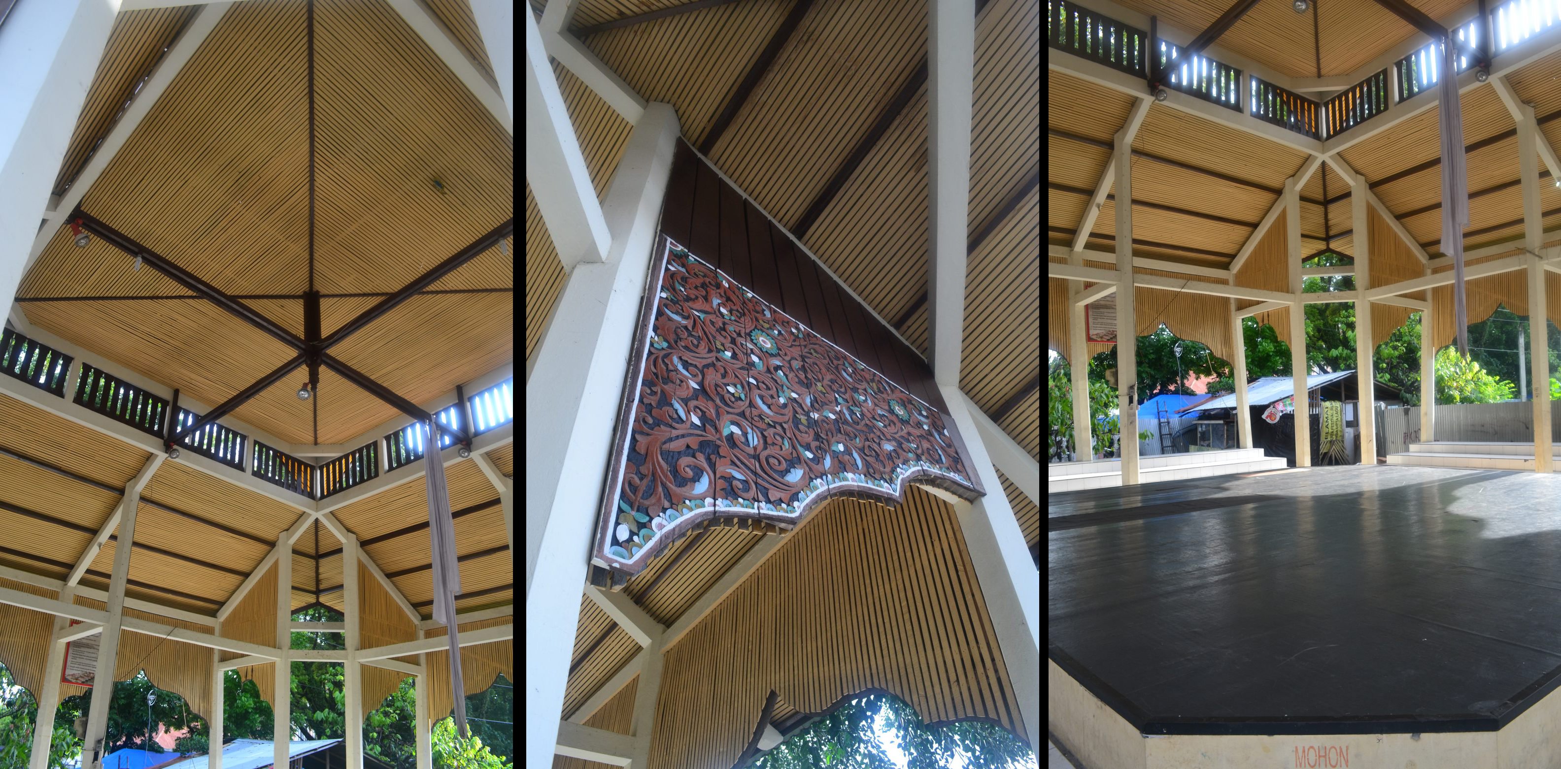 Di kanan terdapat satu pendopo yang menurut perkiraanku mungkin digunakan sebagai tempat latihan teater atau latihan baca puisi. Langit-langitnya yang tinggi dengan susunan kayu lambrisering juga hiasan tiangnya mempercantik detail bangunan ini. Panggung datar di tengah bangunan terbuat dari kayu yang bisa berderak jika pelakon panggung bergerak di atasnya. Aku membayangkan sastra melayu yang indah itu dibahasakan dan diteriakkan lantang di ruang-ruang pertunjukan terbuka ini. Juga terbayang muda mudi berlatih tari piring yang biasanya hanya kulihat di acara pernikahan saja. Semoga dengan ruang kultural seperti ini, kebudayaan alami tidak punah digerus arus global dan terus ada generasi yang menganggap lokalitas itu sesuatu yang tetap keren dan bangga akan kekhasannya.