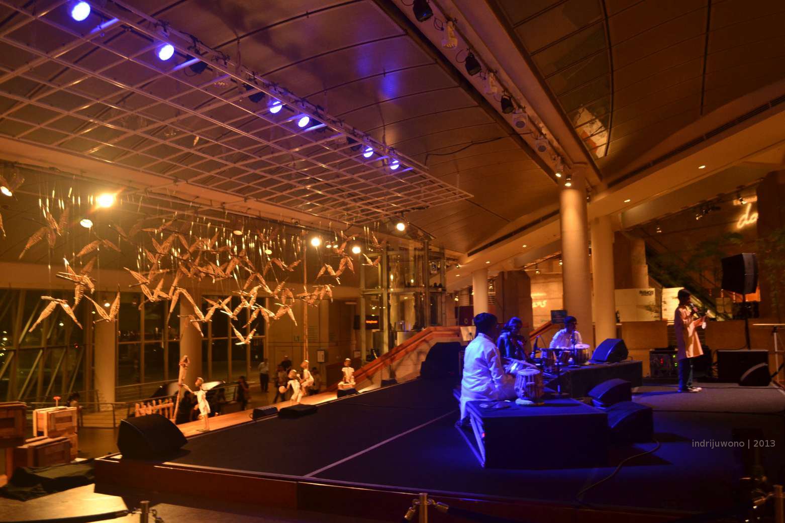 Menyisiri tepi Gedung Esplanade, aku menemukan pintu masuk di antara dua oval durian itu. Sebelumnya aku melihat-lihat di plaza depan pintu masuknya, yang terdapat dua kolam dengan beberapa permainan pencahayaan di bawah kolamnya. Aku memasuki bagian tengah yang sedang berlangsung acara Kalaa Utsavam, satu festival kesenian India. Ada pertunjukan tabla di tengah atrium besar itu, yang dihadiri oleh sekerumun orang India dan beberapa turis asing. Di tengah, ada pameran boneka oleh salah satu seniman India. Tiba-tiba aku merasa, apakah mungkin ini semacam pertanda bahwa aku harus ke India? Negeri yang ingin kukunjungi sejak aku SMA itu tiba-tiba menari-nari dalam benakku.