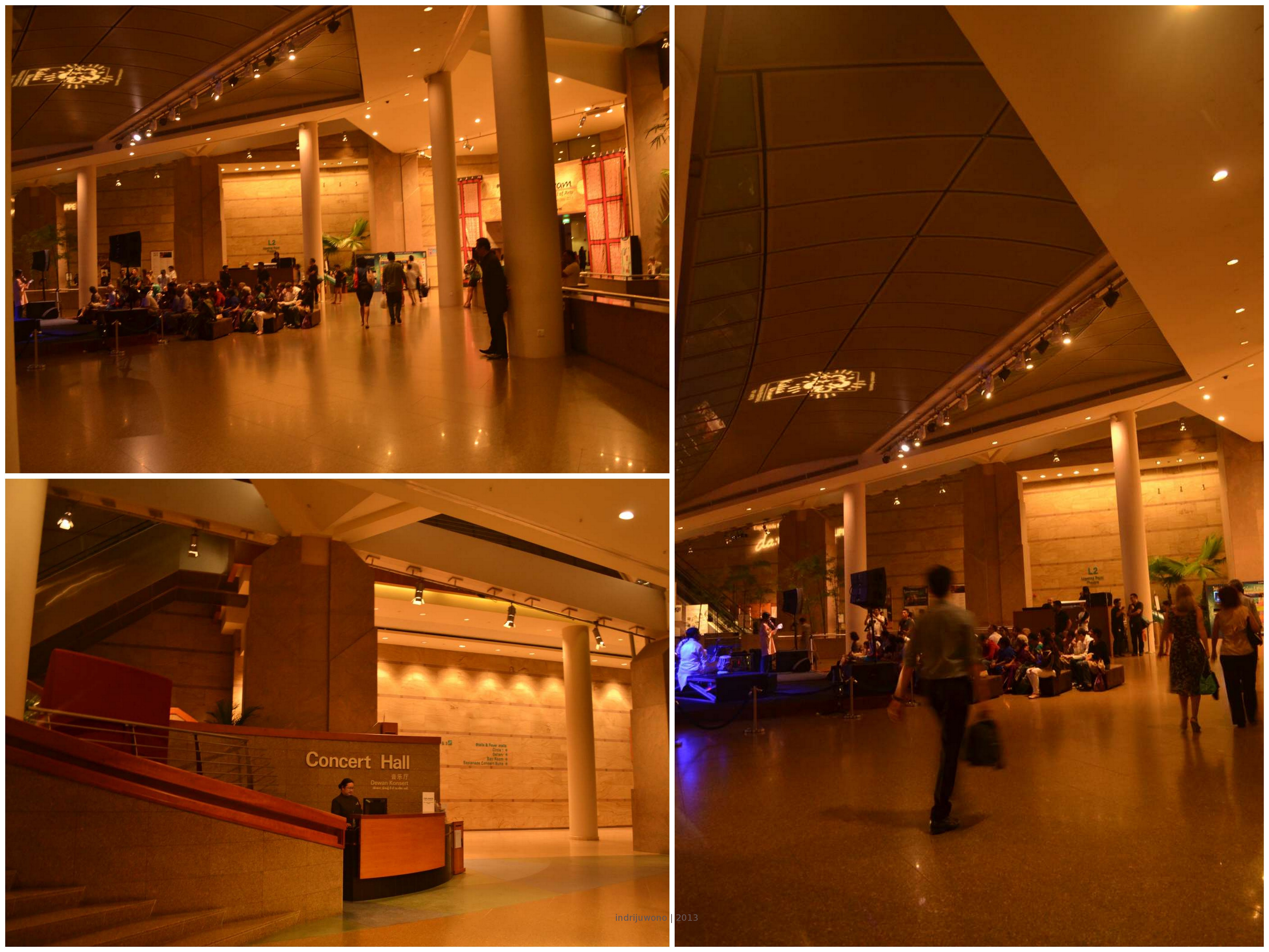 Aku mengitari atrium dan melihat beberapa pintu masuk ke area teater. Sebenarnya Esplanade ini adalah gedung pertunjukan bertaraf internasional yang sering mengadakan pertunjukan-pertunjukan berkelas yang cantik. Saat aku ke sana saja sedang ada pertunjukan balet Swan Lake dari Bolshoi Ballet, Rusia. Sebenarnya ingin menonton, tapi sayangnya harga tiket tak terjangkau uang saku.
