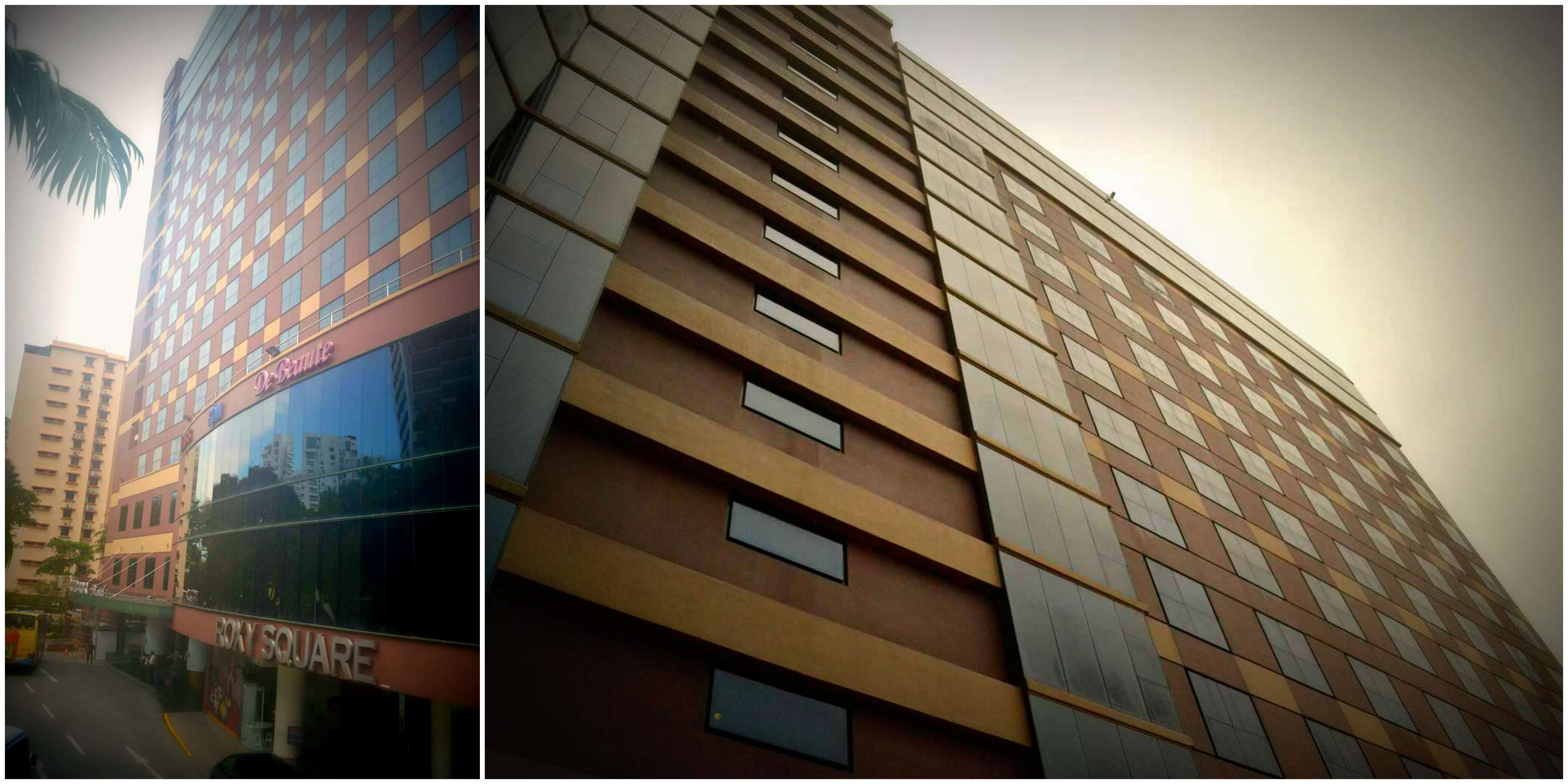 Grand Mercure Roxy Hotel yang berdiri tahun 1999 ini menjadi tempat tinggalku selama di Singapura bersama trip dari Skyscanner. Dinding luarnya dari cat tekstur warna merah keunguan berpadu dengan krem dan deretan jendela, menjadi bentuk yang cukup umum dan khas di tahun pembangunannya itu. Sesuatu yang dikatakan post modern di masa itu. Namun demikian, suasananya di tengah pemukiman menjadikannya nyaman dan hangat dengan pergerakan yang tenang, bukan arus lalu lalang yang terlampau cepat. Pepohonan rindang menaungi sekitarnya, sehingga di luar hotel pun merasa sejuk.