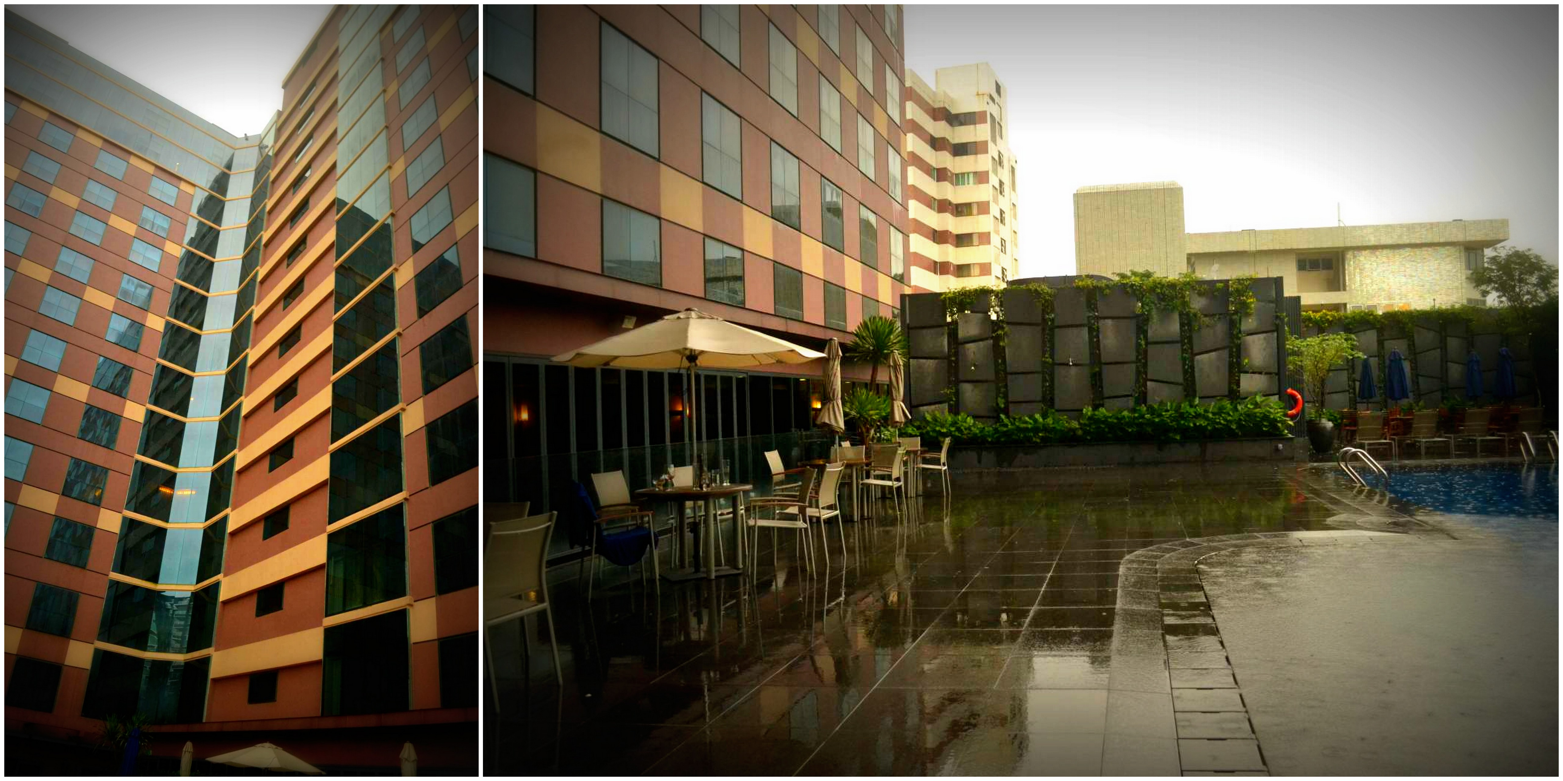 Pagi di hari terakhir, turun hujan gerimis di Singapura. Niatku untuk berenang di kolam lantai 5 terancam batal. Aku sudah sampai tepi kolam dan melihat butir-butir hujan berjatuhan. Di tepi kolam renang terdapat ruang fitness dan dua ballroom menghadap langsung ke kolam renang. Sambil menutupi kepala dengan handuk, aku berjalan di atas tepian kolam yang berlapis andesit hitam itu. Bahan material yang sama menutupi pinggiran kolam dan saluran overflow-nya.