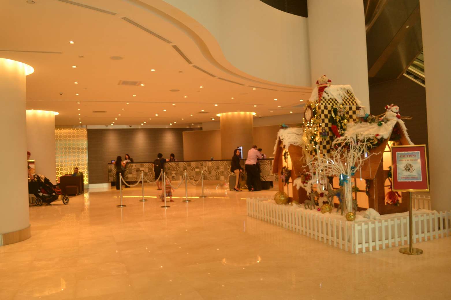 Lobbynya sendiri berlapis lantai marmer ukuran besar dengan lampu bernuansa kuning yang hangat. Di tengah sudah nampak pohon natal dan hiasannya yang sering menjadi latar orang-orang berfoto. Dari resepsionis, kita bisa langsung ke lift lobby yang berdinding keramik mozaik warna hitam dari bahan kaca, sehingga berkilauan ditimpa cahaya lampu.