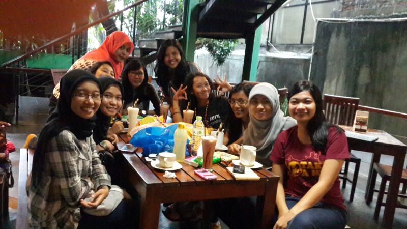 Penulis-penulis yang berkediaman di Jakarta sempat kumpul-kumpul untuk berkenalan di Depok. Rasanya seru sekali mengobrol bersama orang-orang yang tidak aku kenal sebelumnya, cuma bertukar kata lewat Whatsapp, berdiskusi soal event-event yang akan kami adakan untuk promosi buku kami. BUKU KAMI!!! Namanya juga cewek, dari obrolan buku sampai curhat-curhat pun keluar. Rasanya seperti punya adik-adik baru. Iya, sekeren-kerennya aku kelihatannya, penulis-penulis ini rata-rata berusia lebih muda dariku.