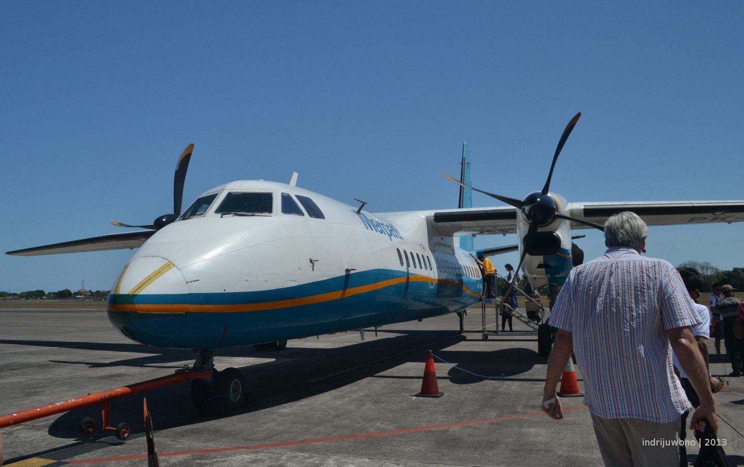 Seperti biasa, aku melakukannya lagi. Kami duduk di samping conveyor supaya tidak terlalu banyak dilewati orang, namun masih cukup bisa mendengar pengumuman keberangkatan pesawat yang akan kami naiki. Walaupun delay juga selama hampir tiga puluh menit, akhirnya kami meninggalkan Bandara Ngurah Rai dengan Merpati MA-60 berbaling-baling ke tempat tujuan selanjutnya.