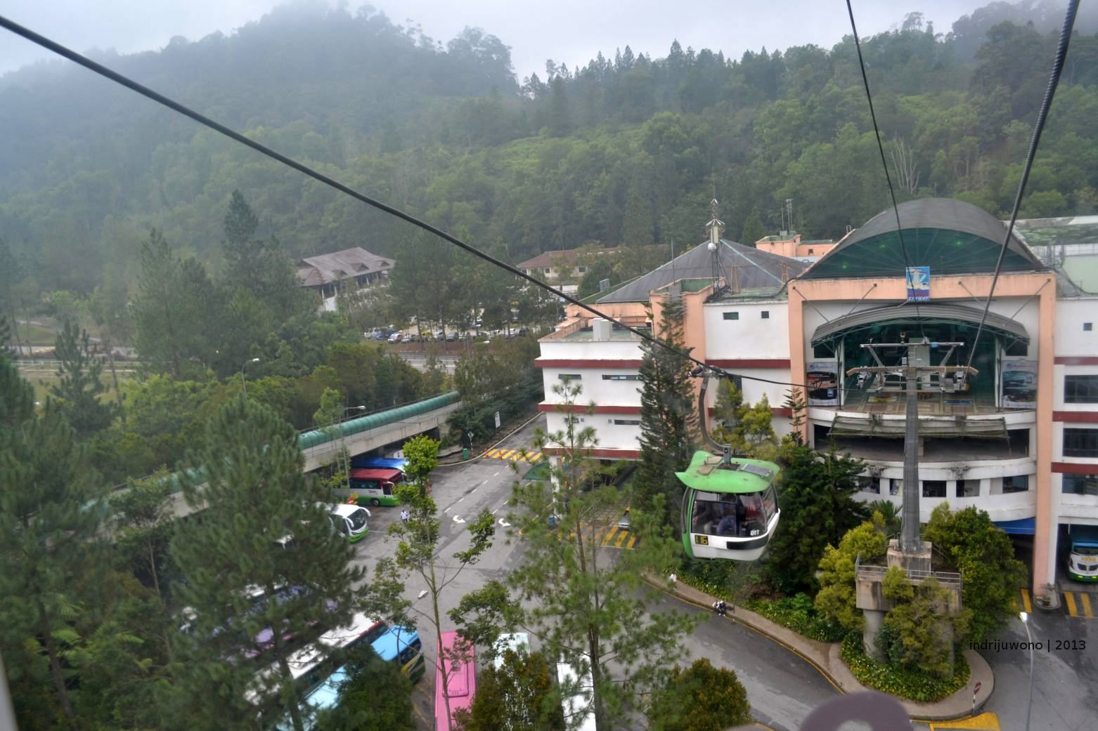 Kereta gantung naik perlahan-lahan dan perlahan-lahan pemandangannya indah terlihat. Bukit-bukit hijau di kiri kanan perlahan ditutupi kabut putih. Waahh, seperti naik ke nirwana!