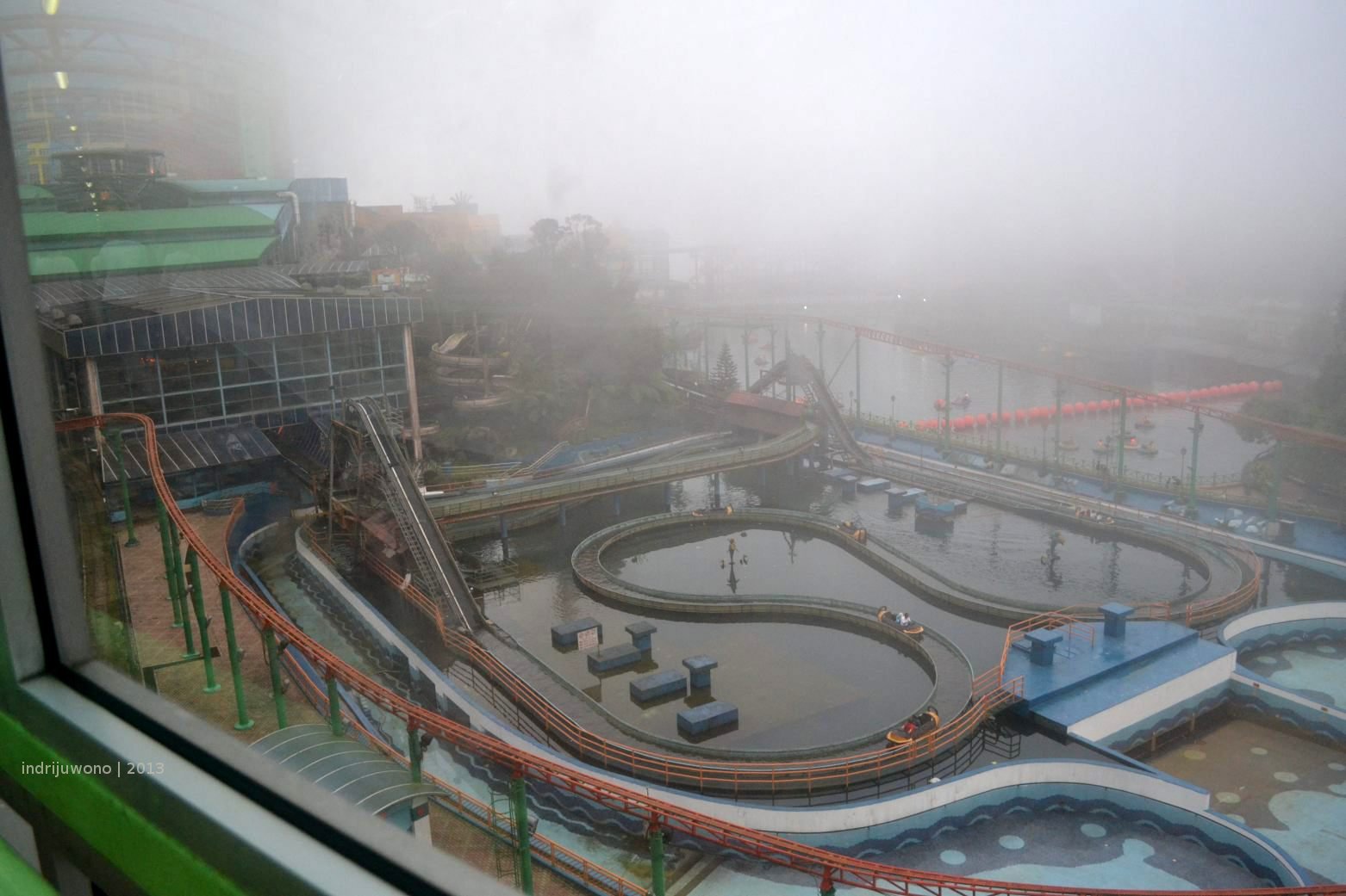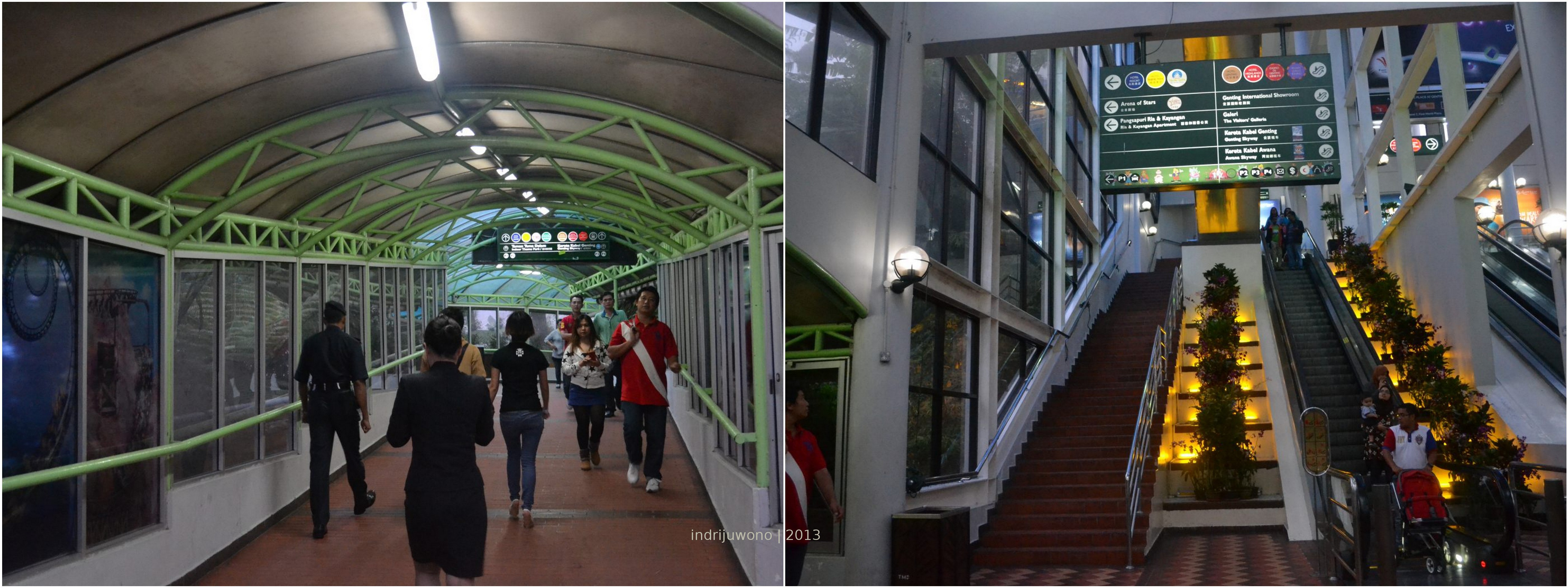Pesan teman-temanku untuk membawa jaket di Genting rupanya tidak salah, karena sore itu udara mulai berhembus dingin. Agak-agak mirip sih dengan udara di Puncak Pass, kalau tidak memakai jaket bisa membuat badan agak menggigil. Daripada terus kedinginan, aku masuk ke salah satu bangunan yang sepertinya adalah area permainan. Berbagai mainan ketangkasan ala timezone dimainkan dengan mesin di sini. Agak bosan, aku melangkah ke koridor luarnya yang keseluruhannya dilapis kaca. Tidak heran, kalau koridor dibiarkan terbuka, hawa dinginnya pasti membuat tidak betah. Dari koridor aku melihat area permainan outdoor yang agak-agak mirip Dunia Fantasi di Jakarta. Tapi udara dingin membuatku malas juga untuk mencobanya. Lagipula, pada dasarnya memang aku sudah tidak tertarik lagi dengan permainan-permainan bermesin itu.