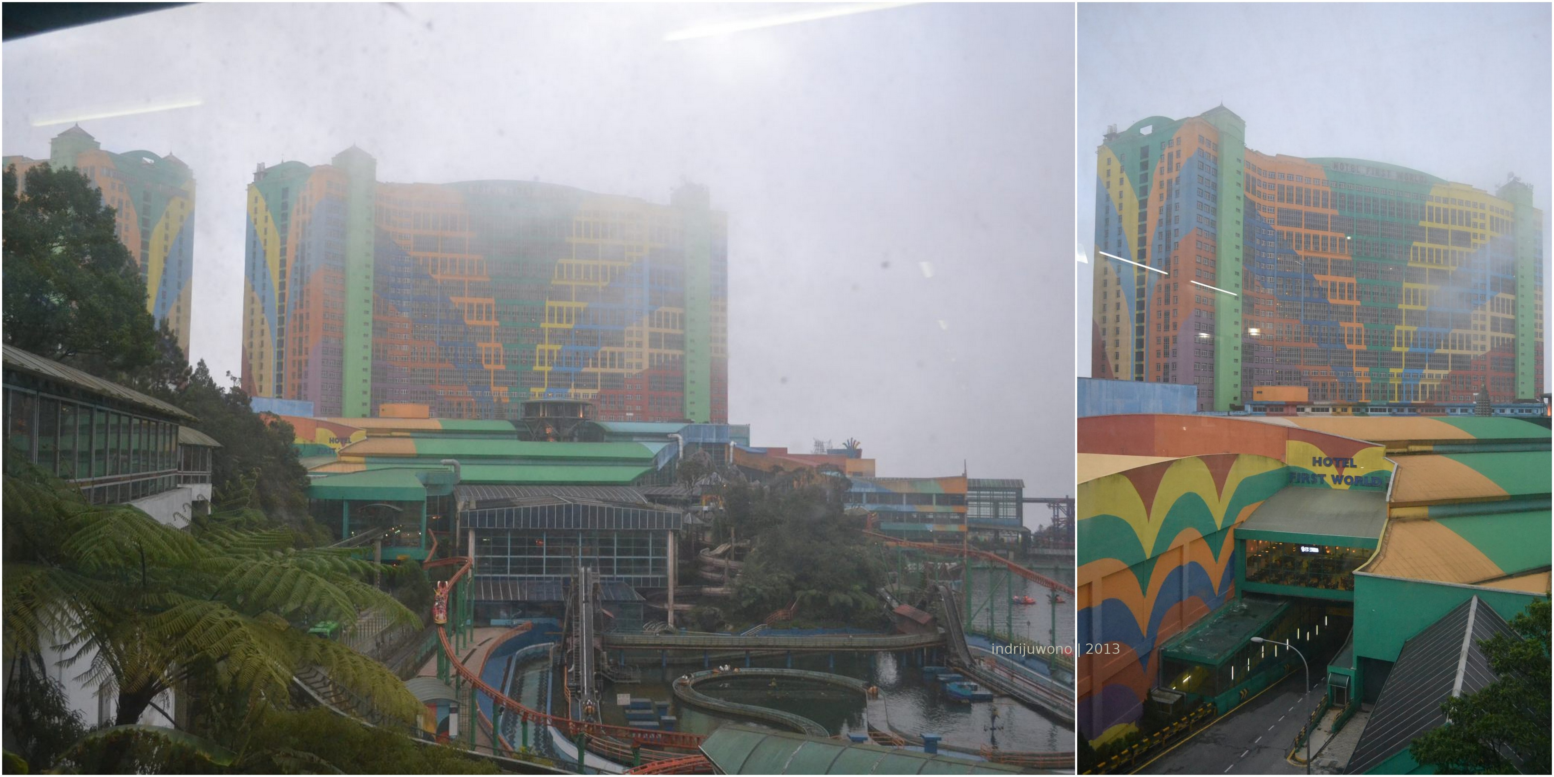 Tempat kedua, semata-mata karena rekomendasi mama, yang berpelesir ke sana beberapa tahun yang lalu. Katanya bagus, bagus, gitu. Aku sih sebenarnya tidak tertarik pada theme park atau kasino. Tapi ketika teman sekantorku cerita kalau ada kereta gantung menuju atas kawasan Genting yang cukup lama naiknya, aku langsung tertarik. Kereta gantung? Kereta gantung? Asyik banget naik kereta gantung di gunung!
