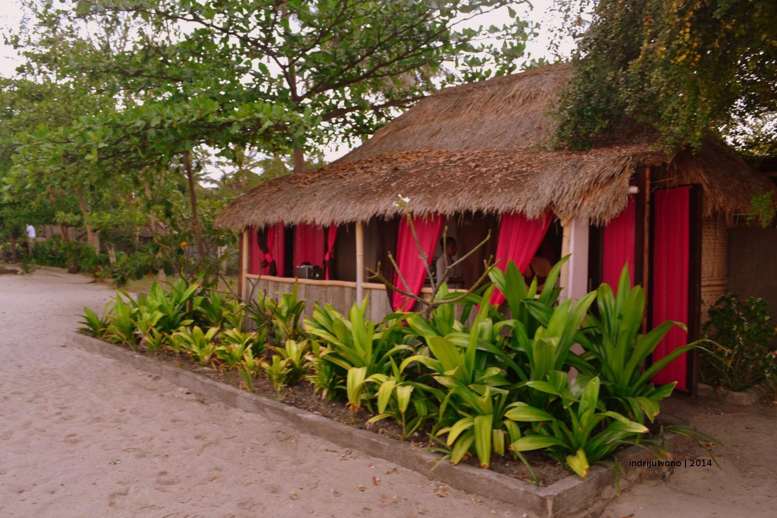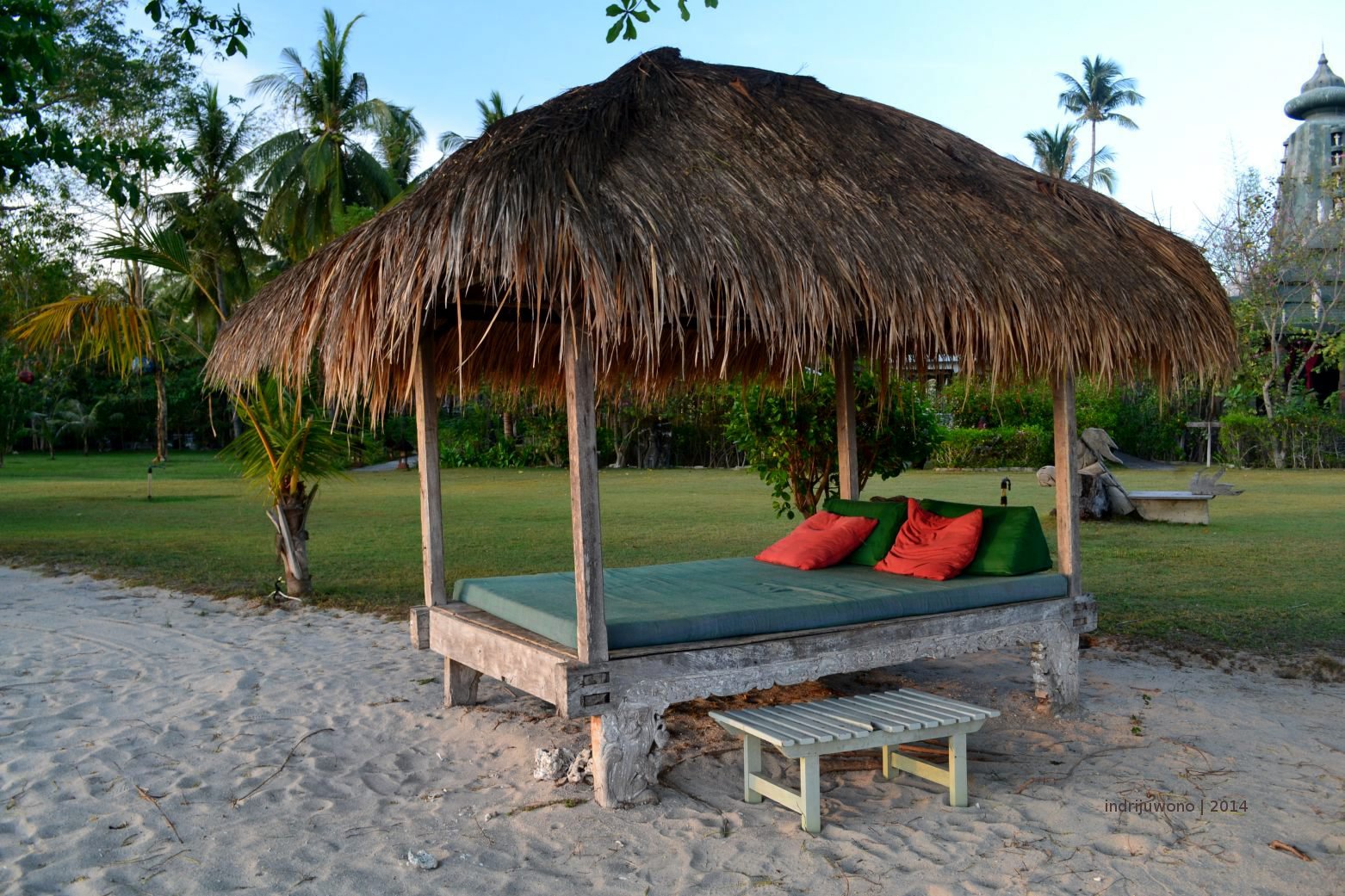 Di pantai yang berpasir putih, di antara pohon kelapa, ditemani semilir angin, asyik berayun-ayun di hammock sambil membaca. Ombak yang bergulung kecil-kecil di pantai yang dangkal hingga jauh, membuat kantuk datang lebih cepat. Pasir putih menghampar luas sejauh mata memandang, tak terbatasi oleh karang satu pun. Berjalan merasakan bulir di bawah kaki, bercerita tentang kisah hari ini, tentang harapan atau angan-angan.