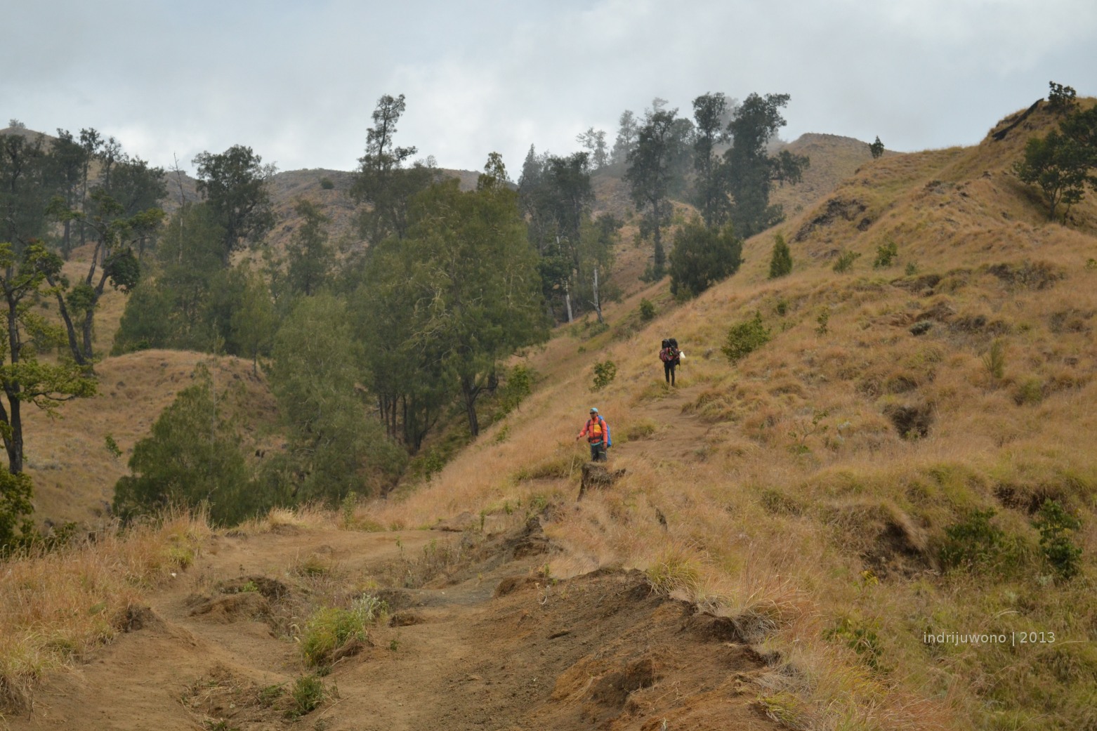 Rombongan India itu meninggalkan pos terlebih dahulu. Aku yakin kami akan bertemu lagi di jalan nanti. Sesudah cukup istirahat, kami melanjutkan perjalanan. Jalur berikutnya berpasir, sehingga kami harus agak berhati-hati melangkah. Tapi tak terlalu panjang lalu mulai memasuki hutan. Pada awalnya Budi, aku, Jay, Sopyan berjalan beriringan. Lama kelamaan Budi berjalan jauh di depan, dan aku di belakangnya beberapa menit sampai tak melihat sosoknya lagi.