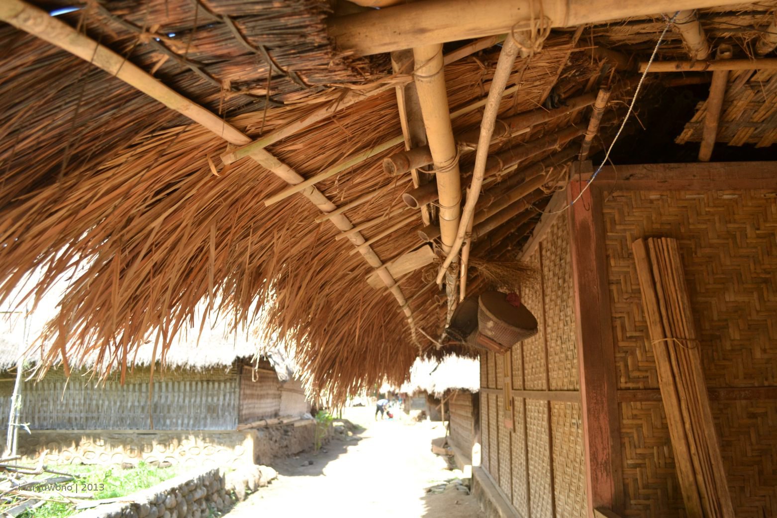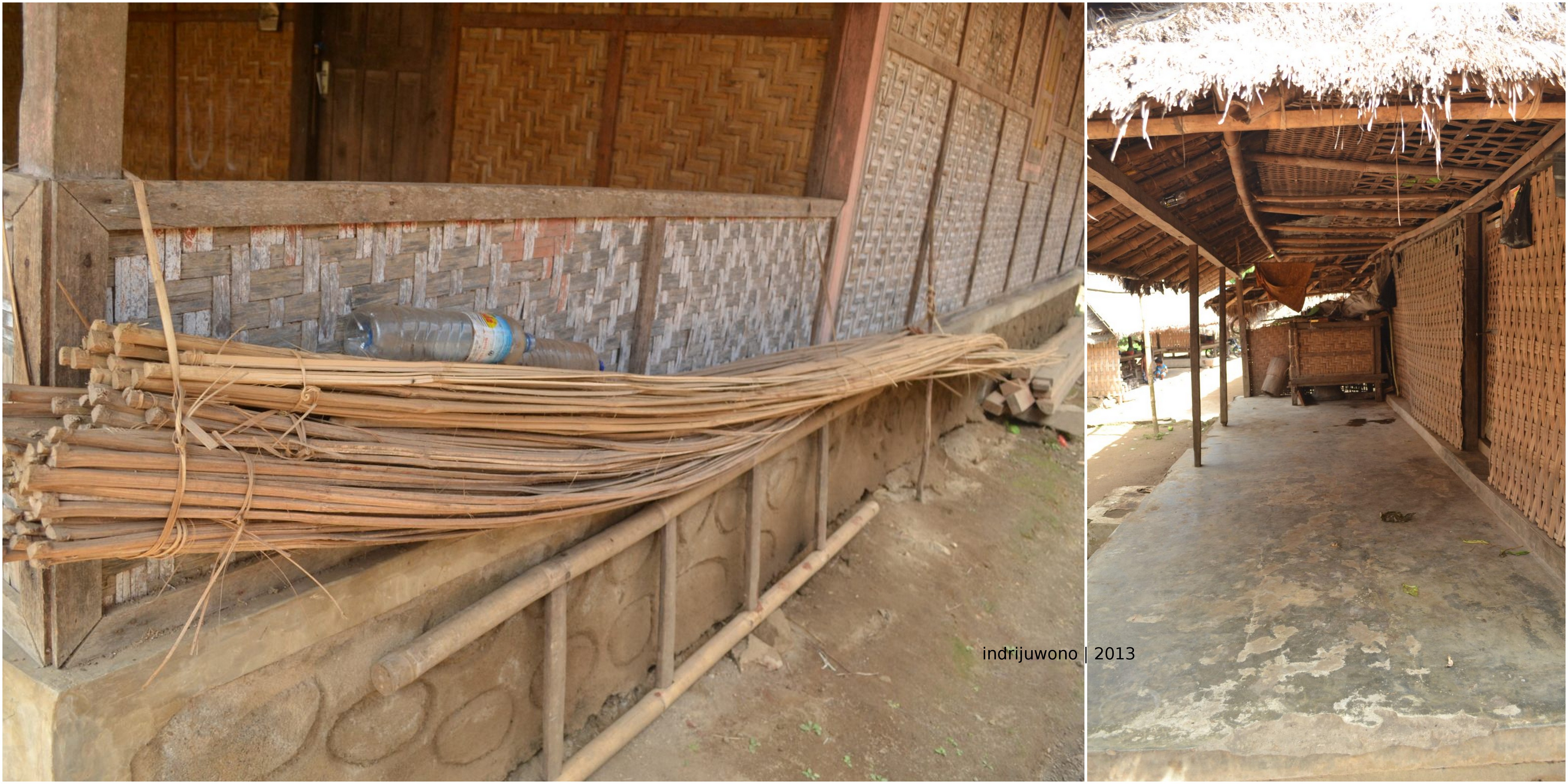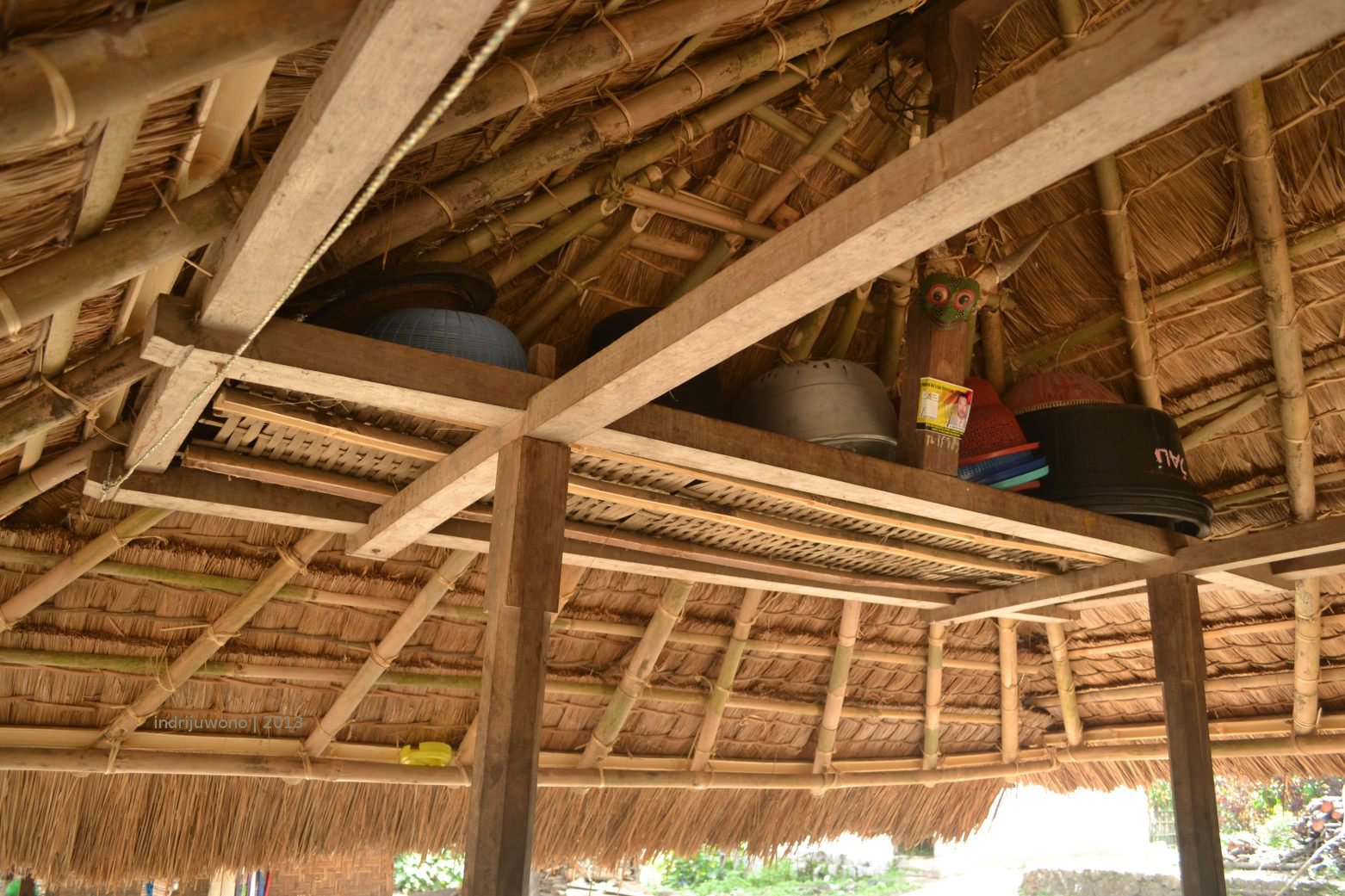Structured by wooden roof truss, while the purlins, rafters and battens made by bamboo of various sizes, covered with layers of dried reeds tied to each rafter. The top of the roof clamped with two bamboo slats that form a distinctive pattern. As with other traditional buildings, their habit of cooking at home can dry reeds.