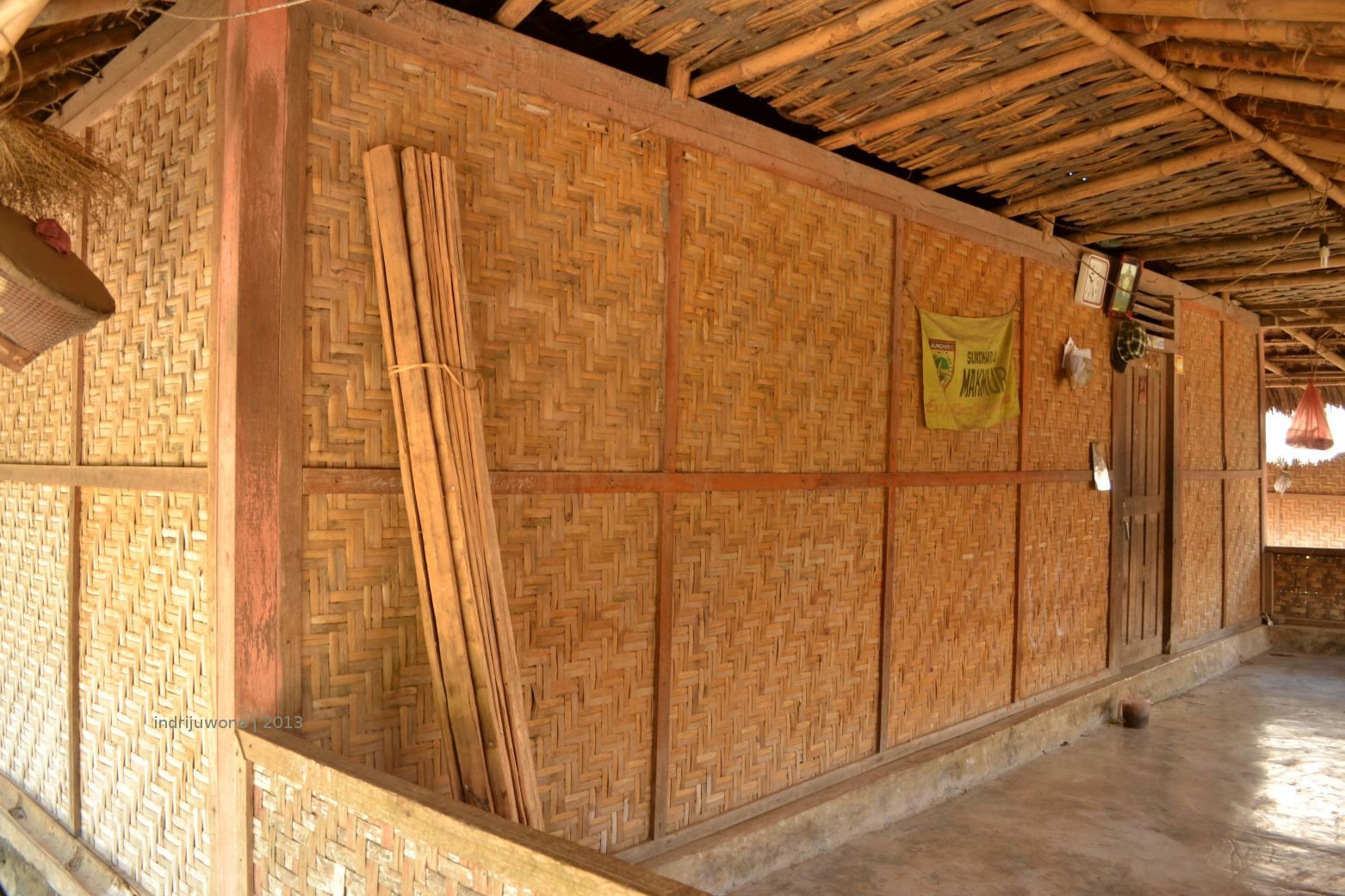 kusen pintu dan jendela tetap dengan kayu, dinding anyaman bambu menggunakan pengaku kayu