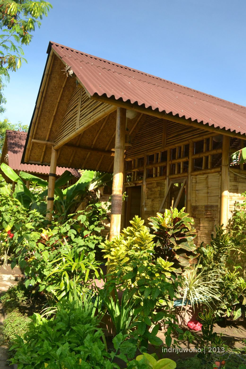 Keseluruhan dinding bungalow ini terbuat dari anyaman bambu, dengan atap seng berwarna merah tua. Namun di bawah seng tersebut dipasang insulasi dan langit-langit miring yang juga terbuat dari anyaman bambu sehingga meminimalisir panas yang biasa dilewatkan oleh seng. Kamarnya tidak menggunakan AC, namun udara mudah menyelisip dari celah-celah anyaman bambu. Satu kipas angin di dinding bisa memberikan tambahan angin.