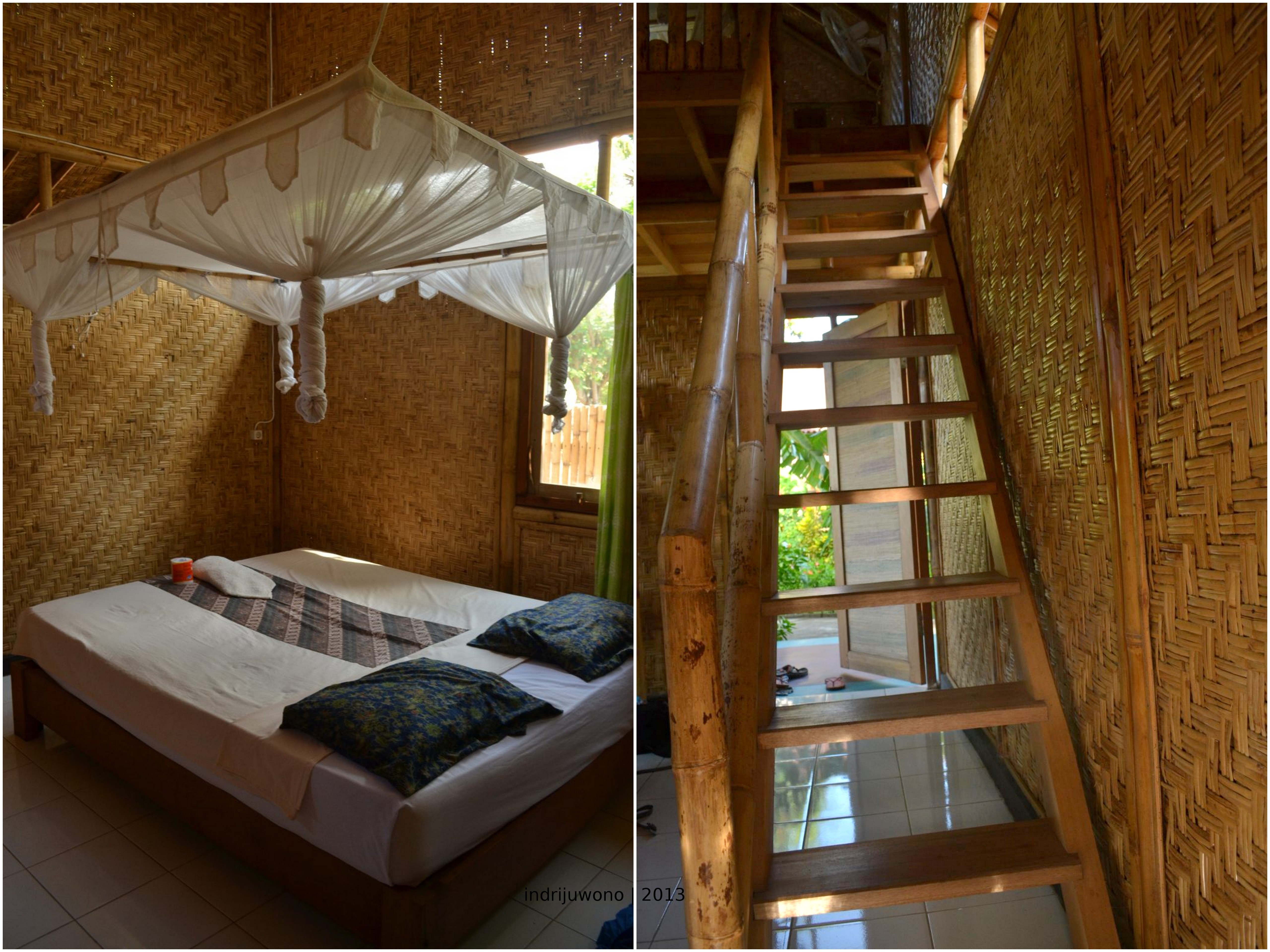 Sambil mengobrol dengan bule yang menghuni kamar sebelah, ternyata ia sudah menghabiskan waktu seminggu tinggal di Little Woodstock. Memang, tidak hanya menikmati pulau saja, di hotel bernuansa bambu ini pun enak untuk leyeh-leyeh menikmati bangunan dan taman dengan suasana yang cantik dan asri dengan harga yang cukup terjangkau.