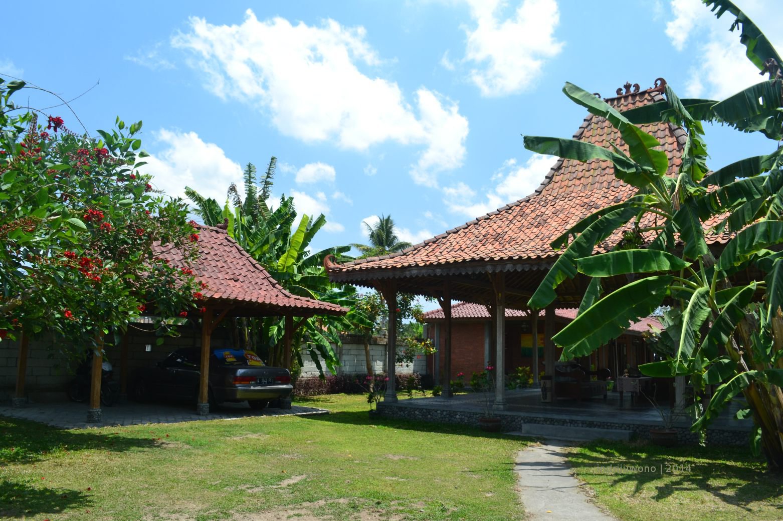 Bentuk aslinya memang joglo semua. Yg area kamar ditambah dinding bata sebagai penyekat.