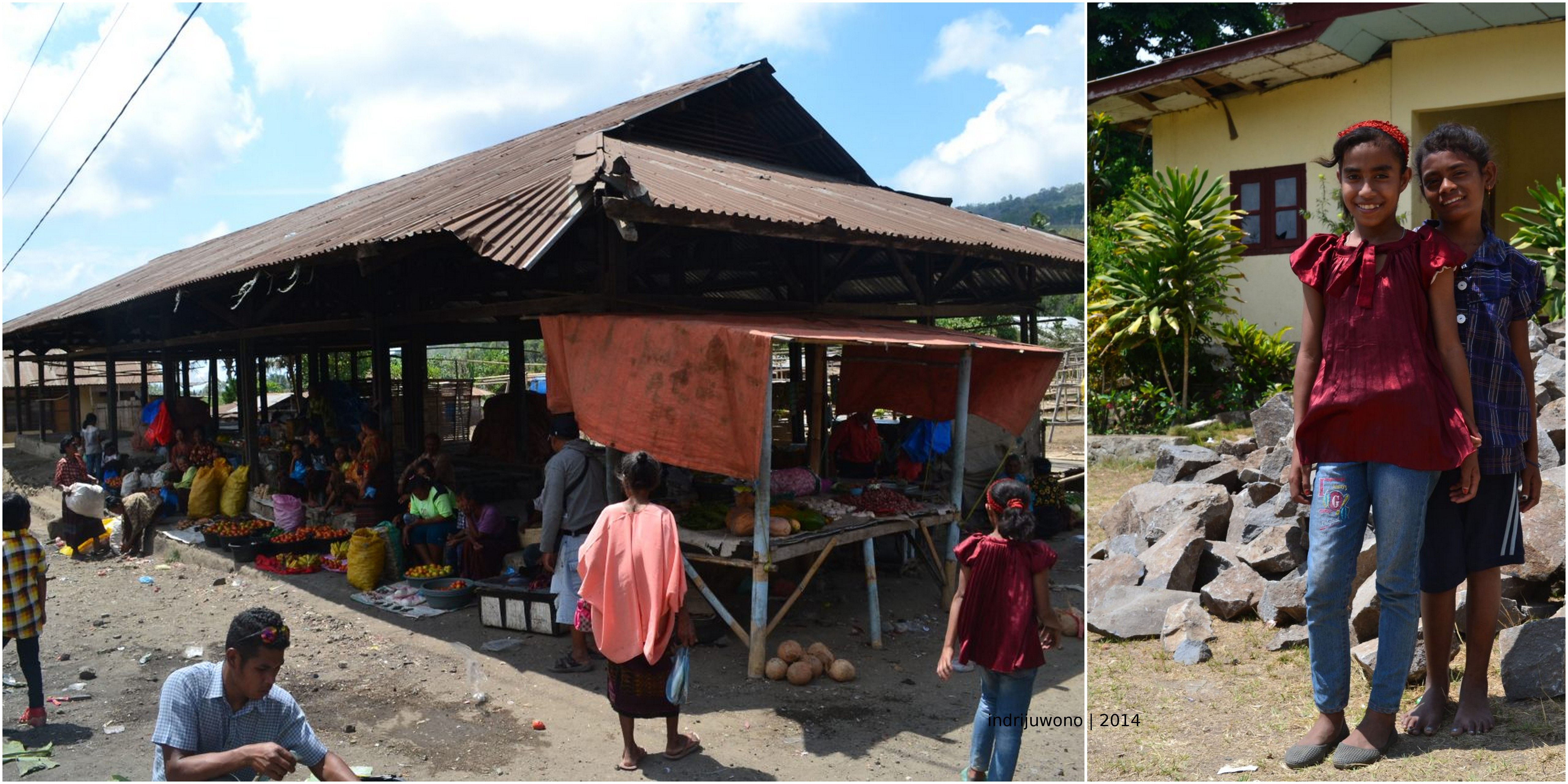 Maria menemaniku kembali ke penginapan melalui pasar yang hanya buka beberapa kali sehari. Hari Minggu itu, pasar ramai dengan orang-orang berjualan. Mungkin karena bebarengan dengan orang-orang yang beribadah di gereja yang tak jauh dari situ. Ini titik keramaian masyarakat Moni. Maria menunjukkan sekolahnya di sebelah pasar, dan gereja tempat ia beribadah tadi pagi. Wajahnya sumringah ketika kupenuhi janjiku memberinya buku, “Membacanya gantian dengan teman-temannya, yaa..”