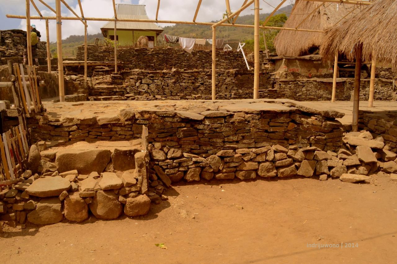 Aku berhati-hati berjalan di sekitar pelataran supaya tidak salah menginjak tempat-tempat yang mungkin suci bagi masyarakat setempat. Jangan mencoba-coba untuk berkeliling kampung adat sendiri tanpa pemandu, karena kita tidak pernah tahu mana tempat terlarang atau tidak. Aku meminta Maria menemaniku ke samping Kanga, yaitu sebuah pelataran bundar dengan susunan batu-batu pipih mengelilinginya. Karena ini tempat suci, tidak boleh dinaiki di atasnya. Tempat ini merupakan tempat suci dan simbol kekuasaan. Di situlah nenek moyang dikuburkan dan disuguhi upacara persembahan juga menyambut Du’a Ngga’e dalam upacara adat.