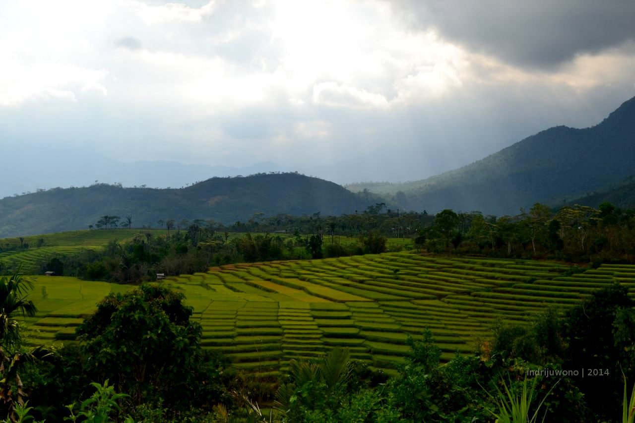 3) Foto sawahnya keren! Aku suka dengan berkas-berkas cahaya matahari yg menyorot dari celah langit itu…