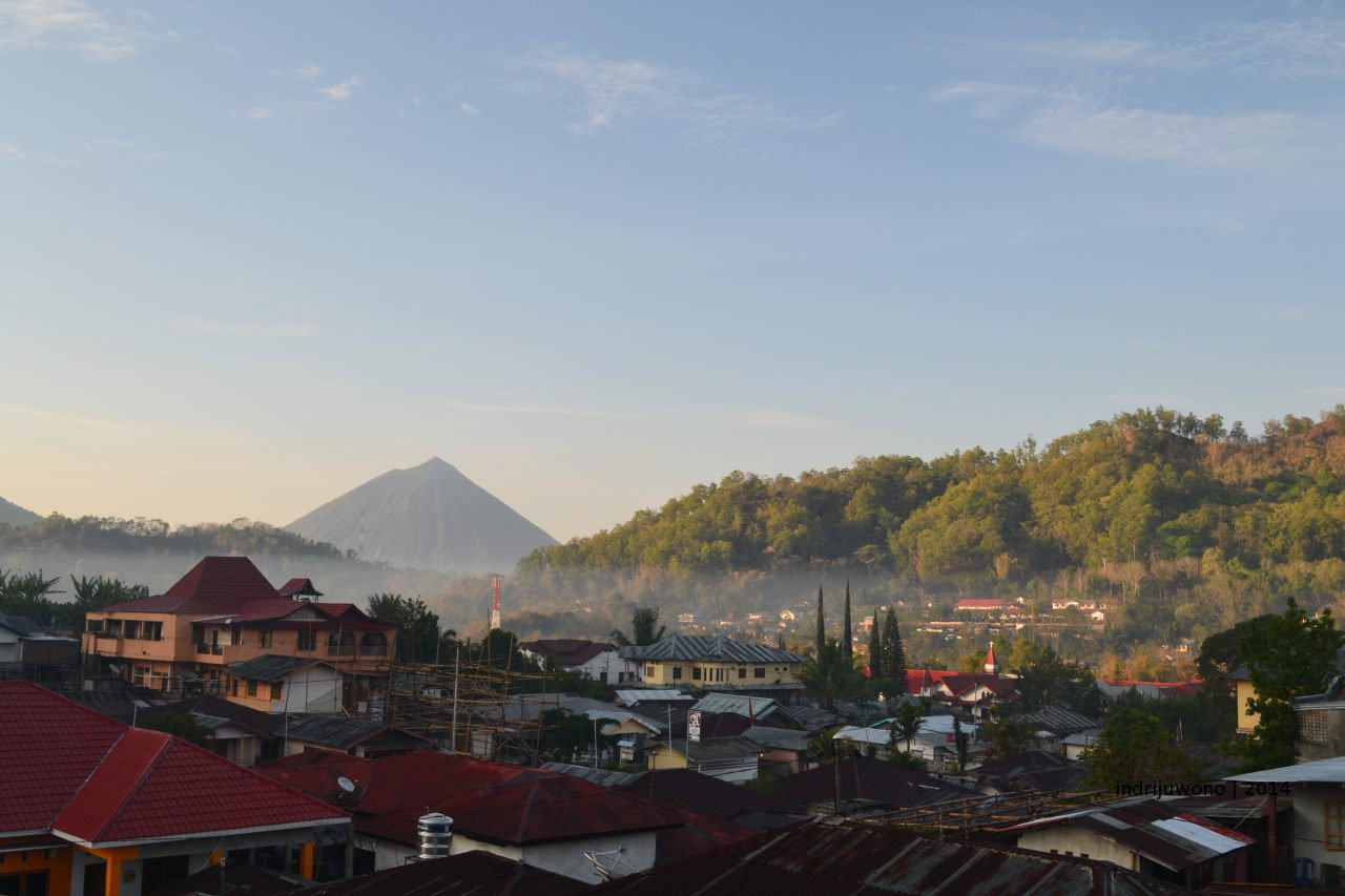 Kota Bajawa yang berada di kaki gunung Inerie memang beriklim sejuk dan dingin. Konturnya berbukit-bukit naik turun, sehingga lansekap kotanya cukup menarik. Di jalan utamanya mudah ditemukan beberapa penginapan dengan harga yang tidak terlalu mahal. Semalam kak Vita bercerita, andai saja kami datang tidak kemalaman, mungkin kami bisa mampir di So’a, salah satu sumber air panas yang cukup terkenal. Tapi karena hari ini jalur kami ke arah Bena, jadi tidak bisa mampir ke So’a.
