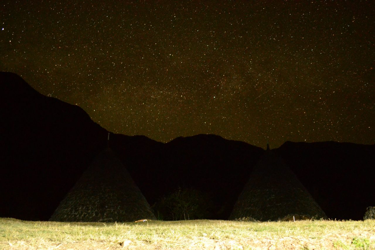 Malam hari di Wae Rebo dengan langit cerah sangat cocok untuk mengamati langit, tidur-tiduran di rumput dan melihat deretan titik-titik bercahaya itu di udara. Ditemani angin pegunungan yang cukup dingin namun tidak kencang, siluet pegunungan di belakangnya membentuk lansekap manis. Seandainya tak ada cahaya dan gelap gulita, bintang pasti terlihat lebih cemerlang. DIAM.
