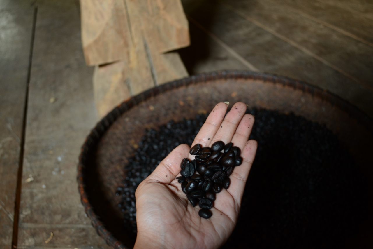 Tidak semua penduduk tinggal di Mbaru Niang. Beberapa tinggal di rumah-rumah kayu yang berada sebelum dari lapangan bundar Wae Rebo. Di depan halaman rumah mereka ada pohon kopi yang berbuah. Selain di halaman, kopi juga ditanam di kebun-kebun sekitar. Hampir semua penduduk memiliki kebun kopi dan mengolahnya. Ketika berkunjung ke rumah Pak Aven, beliau menceritakan berbagai macam kopi yang dimilikinya. Ada robusta, arabica, kopi colombia, bahkan kopi luwak asli. “Luwak di sini berkeliaran di kebun, sehingga asli yang keluar seperti ini,” Pak Aven memperlihatkan kopi yang masih bercampur kotoran luwak yang mengeras.
