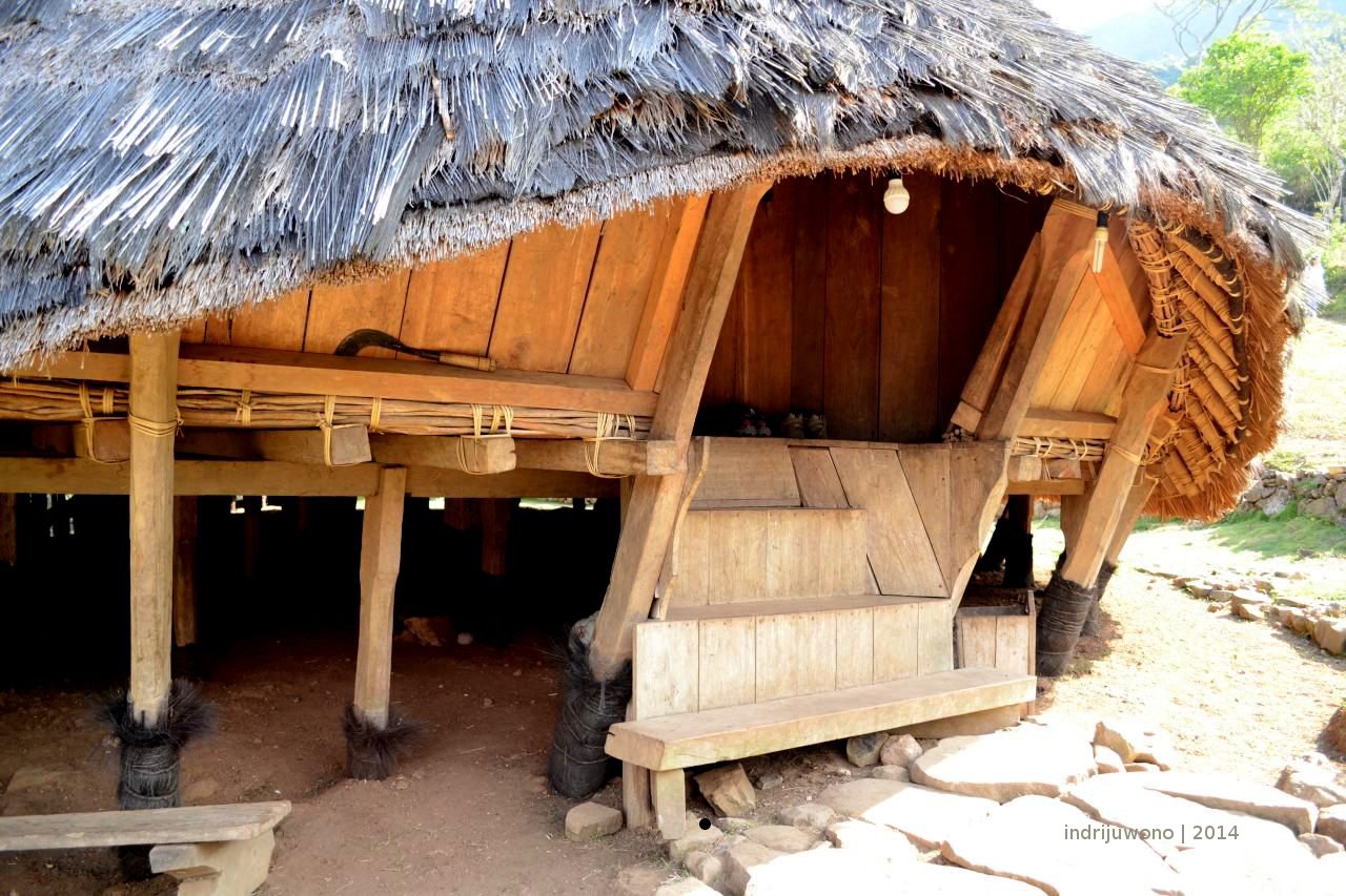 Benar, anjing-anjing kampung berkeliaran di sini tanpa mengganggu, mereka bermalas-malasan di pelataran batu depan Mbaru Gendang. Aku yang biasanya takut anjing pun tidak merasa gentar dengan kehadiran mereka. Anjing-anjing ini cenderung mengambil jarak dengan manusia, apalagi yang bagi mereka asing. Jika panas terik, mereka berbaring di bawah Mbaru Niang di antara tiang-tiang penumpunya.