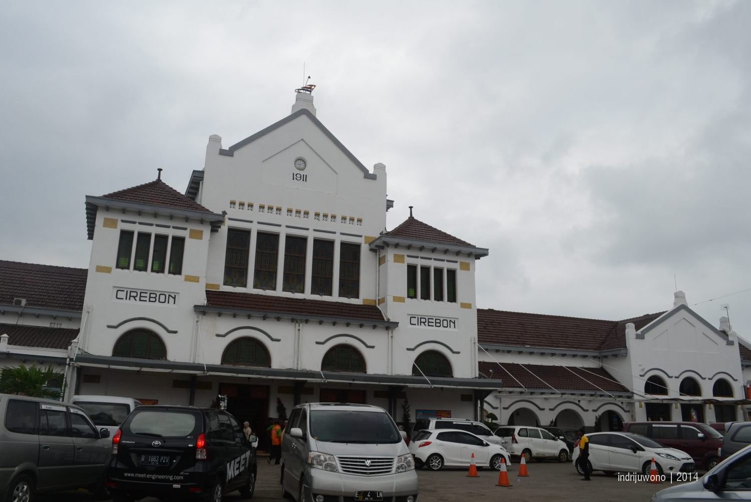 Baru sampai Cirebon saja, sudah bisa melihat peninggalan kolonial Belanda di tahun 1911 ini. Stasiun Cirebon ini sangat fotogenik difoto dari segala sisi. Sisi bagian luarnya, bagian lobby yang tinggi dan kiri kanannya, menyajikan komposisi simetris. Ingatkah bahwa hampir semua bangunan kolonial memakai pola simetris seperti ini? Tak jauh dari stasiun, ada lokomotif tua yang dipajang. Sebenarnya di beberapa kota lain juga ada lokomotif seperti itu, tapi sambil lewat sendiri dan menawarkan jasa memotretkan pada satu orang keluarga yang sedang asyik bergaya sama-sama? Boleh juga. Do the positive thing while you were walking alone is make yourself happy.