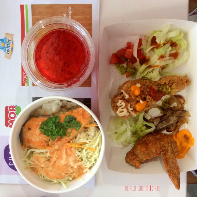 Aneka menu lain seperti Spaghetti arabiata, Chicken Grill Rice, Katsudon, Nasi Uduk, dan menu lainnya yang bisa dihangatkan di microwave siap mengenyangkan perut yang agak lapar. Lebih banyak variasi menu makanan dengan harga yang terjangkau,sesuai dengan lidah kita Indonesia. Satu menu favoritku adalah Wakasei Salmon Rice dengan saus mayo yang pas banget untuk makan malam. Nasi yang empuk dengan salad ditambah irisan salmon matang memenuhi mulutku yang memang penggemar ikan.
