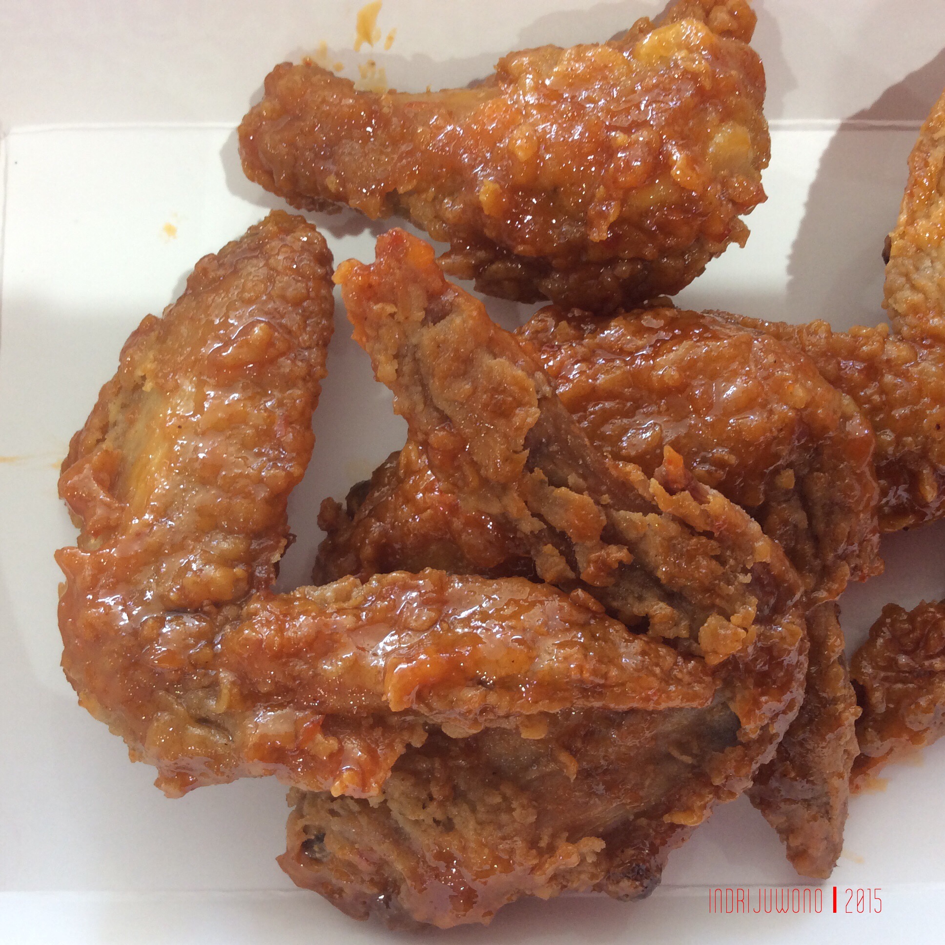 Chicken wing-nya menggoda iman banget itu, Mbak :hehe. Tak heran ya senyum sumringah si pengunjung yang beruntung masuk bidang gambar itu (baca: dirimu :haha) begitu luebaar… *kabur* ayam oh ayam… terus ditaburi sambal pedas pasti jadi sangat sedap jos gandos :hehe. Ha, saya pasti sangat luluh kalau sudah disodori makanan enak seperti ini :haha.