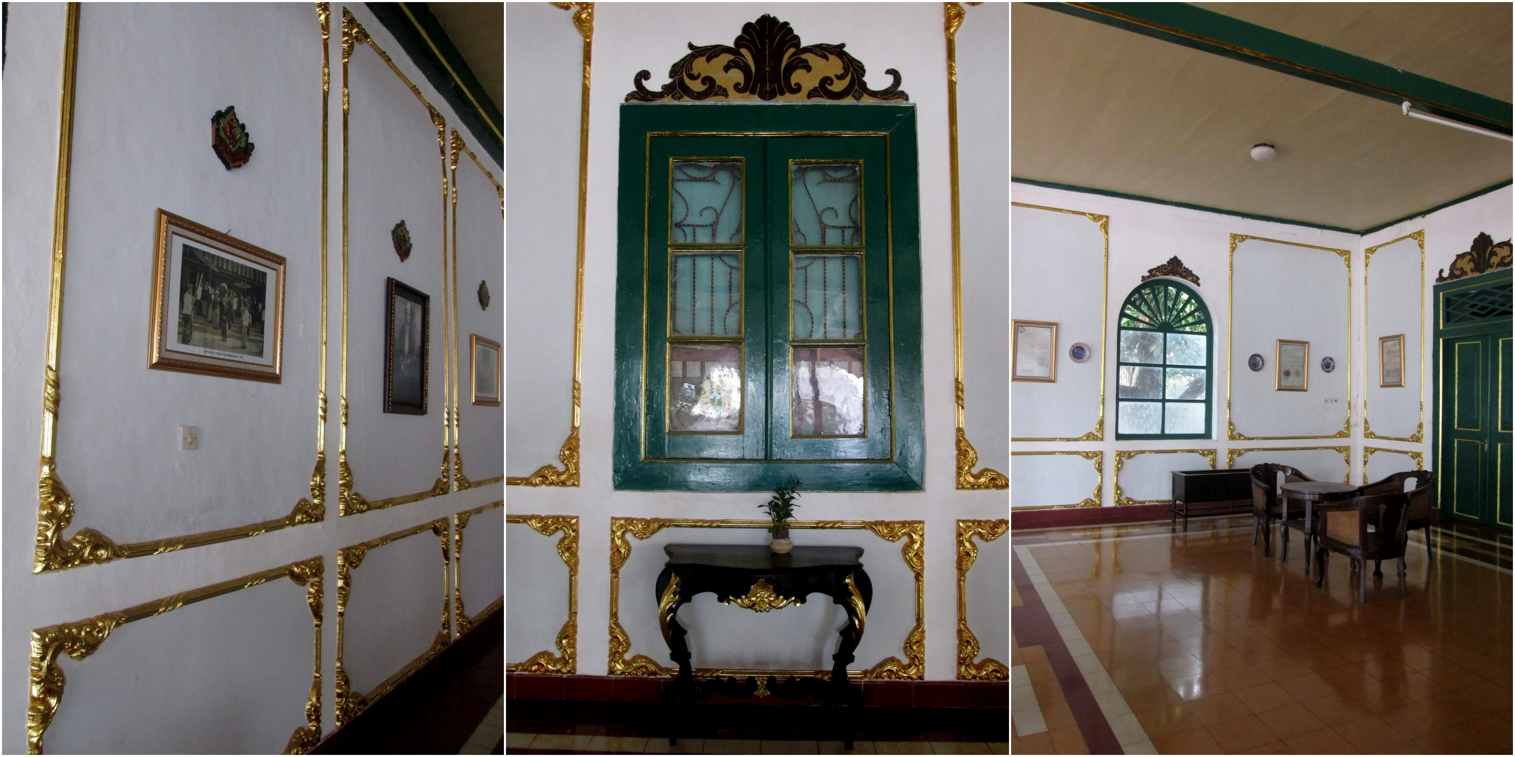 lis warna emas dann ornamen-ornamen hijau  di dinding paduraksa