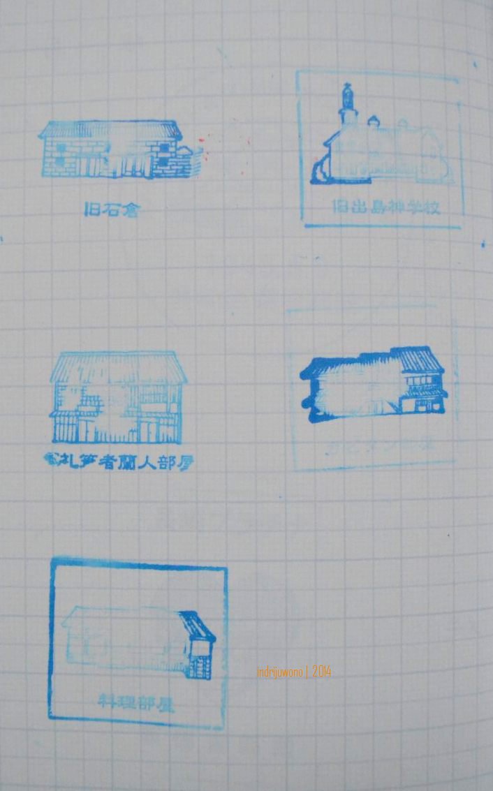 Selain itu, juga ada stempel yang menggambarkan aktivitas di dalam bangunan tersebut, tokoh-tokoh ataupun maskot lokasi. Kadang-kadang di satu tempat tak cukup hanya satu stempel saja, tapi ada beberapa dengan berbagai warna dan ukuran. Jadi bisa dicoba segala macam hasilnya. Rasanya untuk anak-anak, mengoleksi stempel ini bisa menjadi pengingat perjalanan yang menarik. Ide yang sangat bagus untuk diterapkan di negeriku.