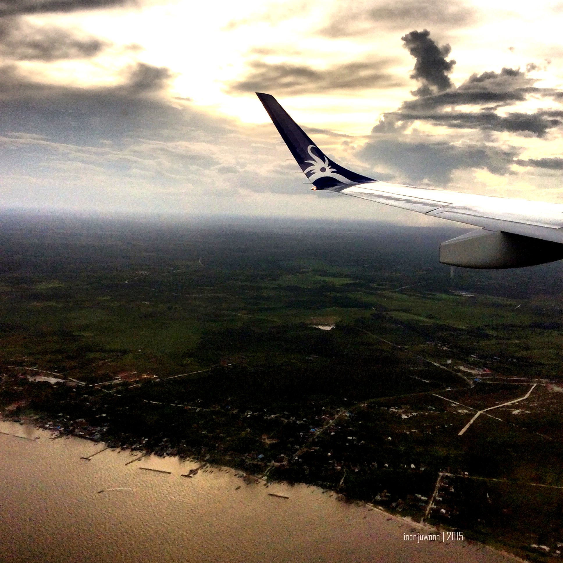 Dari atas pesawat jenis Embraer E-195 ini, aku melihat sungai berlekuk hingga muara, di tengah gerumbul hutan-hutan hijau yang menyejukkan mata. Langit berawan menyambut kedatanganku yang akan menjejak bumi Kalimantan untuk pertama kalinya. Inikah zamrudku yang tetap hijau?