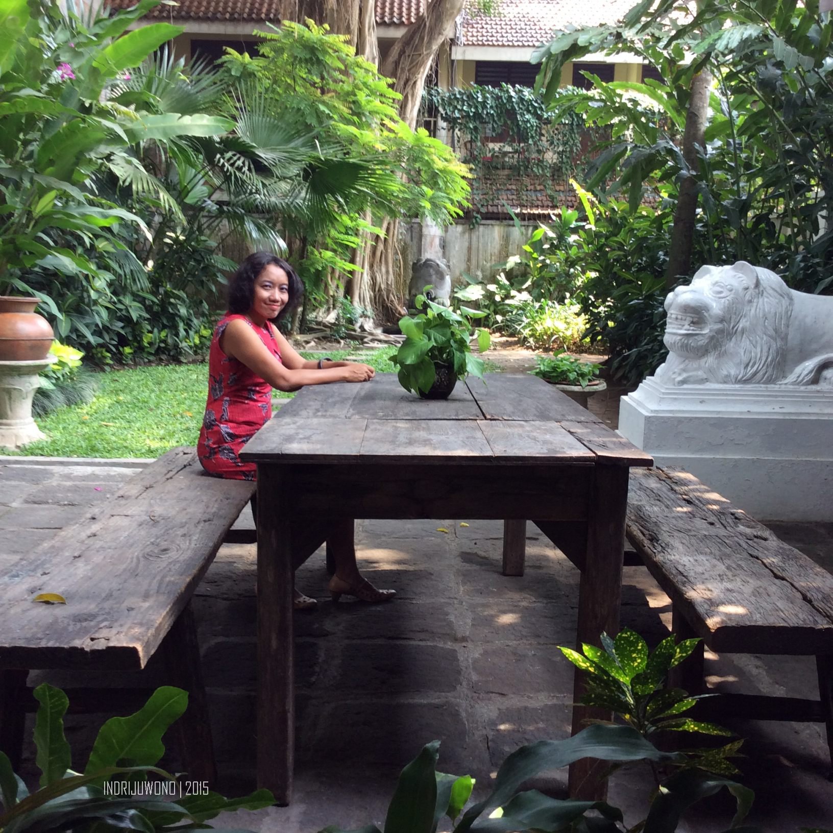 Bangunan utama, satu gedung bergaya kolonial yang dulu milik satu keluarga Belanda, diubah menjadi kamar-kamar hotel cantik yang dengan perabot yang tak kalah antik. Satu meja bundar besar di tengah-tengah menjadi focal point yang kuat. Lantainya teraso yang dipoles mengkilat dan dinding putih dengan pintu-pintu besar membuat ruangan ini terlihat begitu lapang. Ruangan utama adalah Tugu Hall yang bisa dipakai untuk pesta, ruang tengah yang luas dan lapang.