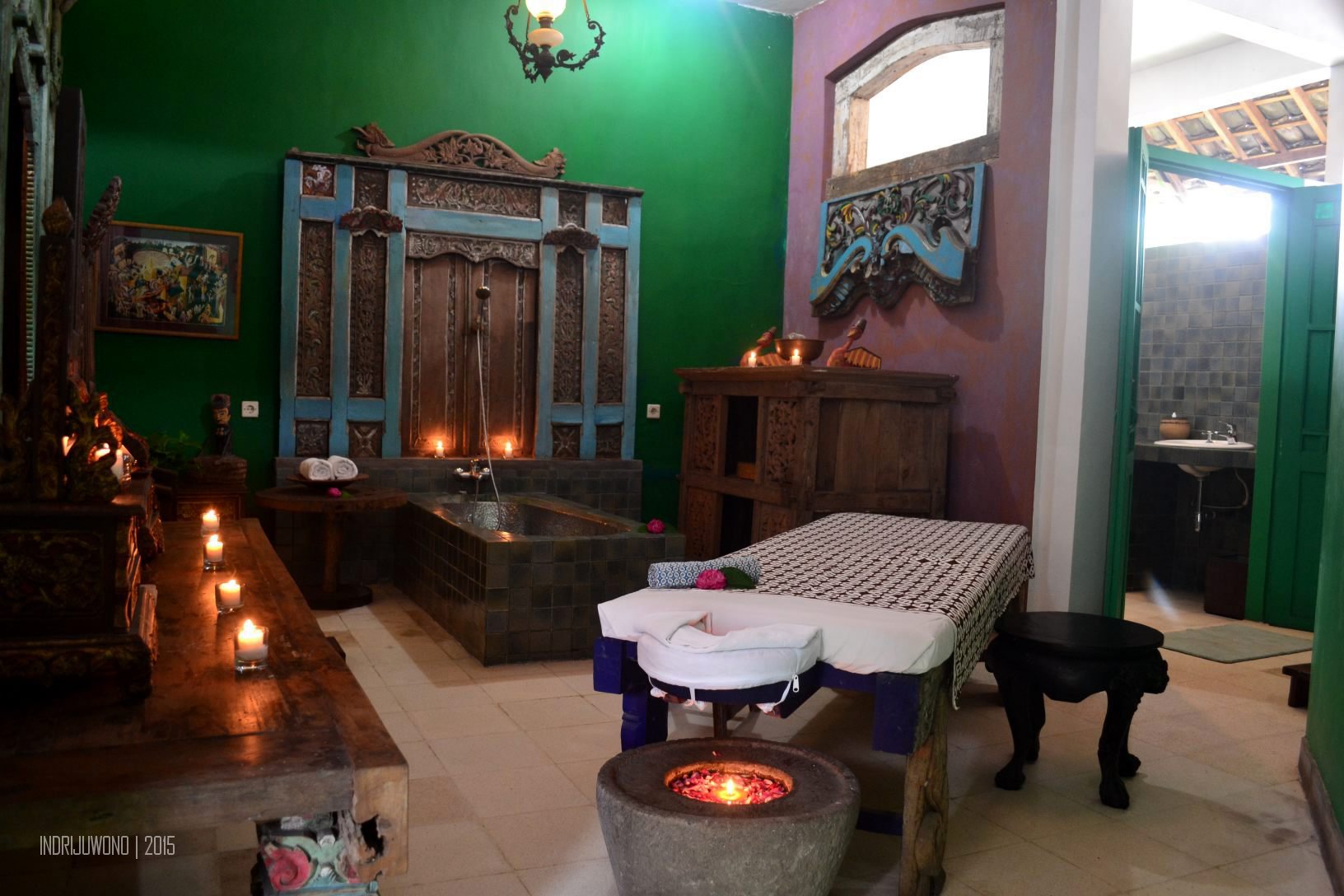Dengan sentuhan antik dan lawas, Tugu Hotel Blitar juga dilengkapi oleh Lali Djiwo Heritage Spa yang berada di bagian belakang bangunan utama. Terdapat dua ruang spa yang dilengkapi dengan bathub dan kamar bilas dengan ornamen-ornamen yang tak kalah cantik untuk memperkuat kesan tradisionalnya. Uniknya, satu pohon besar tetap dibiarkan tumbuh di dalam dan tidak ditebang, melainkan ditembuskan ke atap sehingga daunnya masih menaungi sayap-sayap bangunan. Mencoba fasilitas spa di sini benar-benar memanjakan badan yang letih karena menyetir jauh sejak kemarin. Pasti fasilitas ini menjadi primadona karena benar-benar nyaman sampai aku jatuh tertidur.