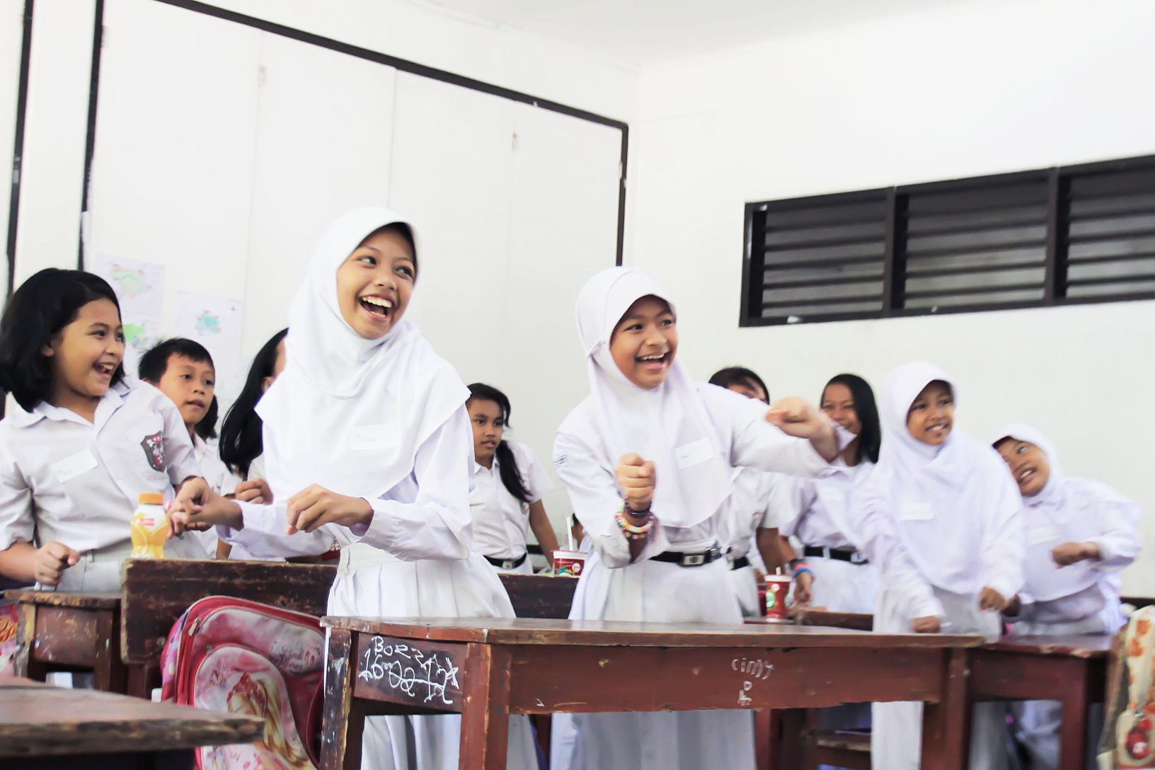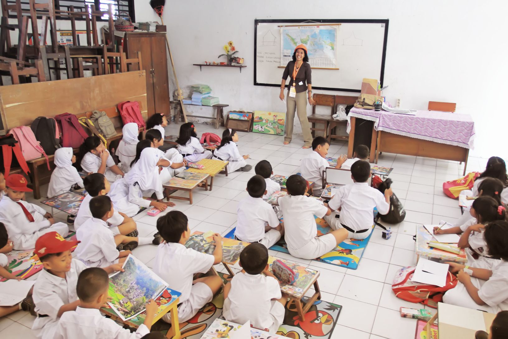 “Halo anak-anak, saya bu Indri. Ayuk, pada duduk semua,..” sapaku ramah melihat anak-anak ini mulai berantakan ketika baru saja ditinggal kak Arie. Mereka memandangiku dengan penuh rasa ingin tahu, namun ada yang berdiri dan duduk di mana pun. “Ayo tepuk meja!” sambil aku mencoba menarik perhatian mereka.