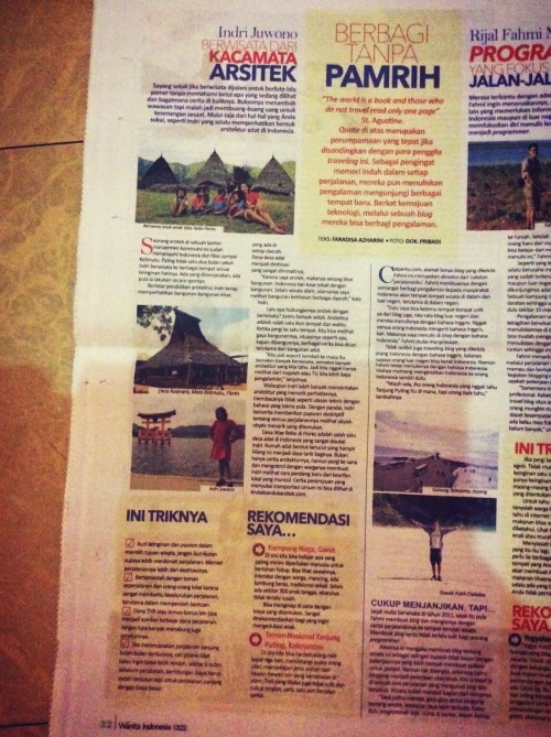 Tahun 2015 adalah tahun yang luar biasa. Tiga catatan perjalananku ke Jepang dimuat di Koran Tempo, dua tulisan dimuat di majalah KalStar Airline, dan satu profilku masuk juga di situs arsitektur rooang.com. Dan ditutup dengan cerita menyambut mentari bukit Pergasingan Lombok yang dimuat di Koran Tempo lagi.