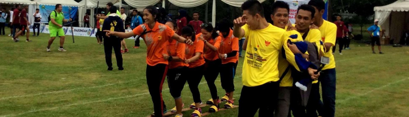 Atlet-atlet dari negara lain tak kalah serunya mencoba adu dagongan, mendorong buluh bambu dewasa bersama dalam kelompok melawan kelompok lain yang menahan. Rupanya butuh tenaga yang besar untuk mendorong tim lawan hingga keluar batas permainan. Di ujung lainnya, rupanya banyak anak sekolah yang sedang asyik bermain gobak sodor walaupun cuaca hujan gerimis sejak tadi dan alasnya menjadi licin. Langsung saja kepala teringat kala selalu memainkan permainan ini ketika SD se-ti-ap ha-ri pulang sekolah di jalan samping rumah hingga tiba jamnya untuk nonton film kartun di TVRI. Pokoknya, kalau bikin acara kemping-kempingan, gobak sodor ini Harus dijadikan salah satupermainan bersama! Sehat dan melatih sportif alami kan?