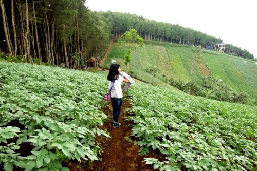 Dahulu jalannya masih berbatu, tanpa perkerasan yang membuat motor licin melaju. Terkadang lebih nyaman untuk berjalan kaki daripada naik kendaraan beroda dua ini. Maka begitu usai aspal dan bertemu jalan berbatu, melangkah lebih jauh sembari menghirup udara dan memandang langit biru adalah salah satu pilihan menarik. Sembari berjalan-jalan di antara kebun sayur hingga masuk hutan yang dipeluk kabut.