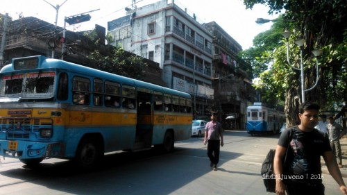 Agak syok menyusuri jalan-jalan India yang menurut orang-orang yang pernah ke sini agak kotor, dan ternyata benar adanya. Di Jalan Mahatma Gandhi, jalan utama di tengah kota Kolkata, jalur pedestriannya kehitaman akibat air buangan yang langsung ke situ. Bis dan trem yang lewat seperti kendaraan sejenis di Jakarta tahun 80-an. Debu dan becek di mana-mana sepanjang jalur perjalanan ini. Tidak ada bis ber-AC yang kinclong di sini, semuanya berjendela terbuka dan sebagian bahkan tak berkaca. Orang-orang berlalu lalang dan bercakap dalam bahasa Hindi. Agaknya daerah yang kulalui ini adalah semacam pasar (bazaar) yang memulai kehidupannya dengan cukup ramai.