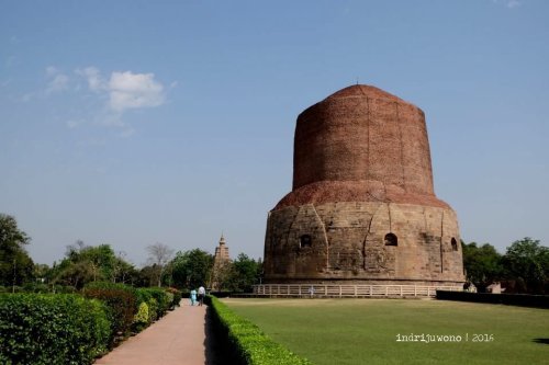 Usai berpamitan dengan Ali dan merelakan uang 100 USD kami bertukar dengan dua helai kain saree, tuktuk kami mengarah ke sisi barat Varanasi. Rasanya jalanan cukup jauh berdebu yang dilewati berkilo-kilo meter jauhnya hingga terlihat gundukan seperti paduan piramid dan cerobong.  Daerah ini, Sarnath, adalah tempat beribadah umat Buddha di India, dan sering dijadikan sebagai tempat upacara keagamaan.
