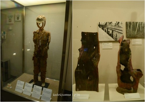 Bentuk museum yang memanjang memberikan pengalaman ruang yang menarik karena arus pengunjung dibawa untuk menyusuri setiap peninggalan-peninggalan yang ada. Sequence diikuti oleh beberapa bagian, kerusakan karena panas yang menyengat (Damage of Heat Rays), kerusakan karena ledakan (Damage of Blast), dan kerusakan karena radiasi (Damage of Radiation). Di sisi-sisi kanan dan kiri dipaparkan foto-foto korban radiasi yang bertahan hidup namun akhirnya menderita karena kanker dan leukemia beberapa tahun kemudian. Aku terdiam dan menatapi gambar-gambar itu sambil termenung. Sebegitukah menderitanya rakyat biasa di sini akibat perang para penguasa dunia? Walaupun 70 tahun silam negeriku dalam posisi dijajah juga oleh negeri matahari terbit ini, tapi efek yang begitu besar pada kota ini juga begitu besar.