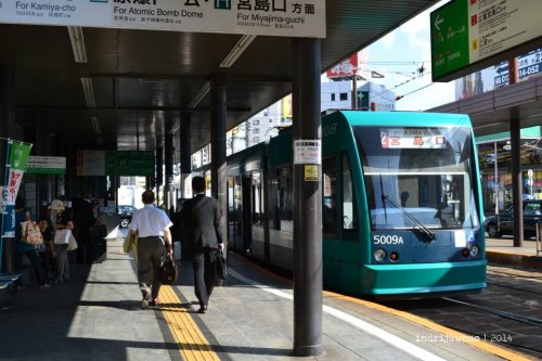 Keluar dari stasiun, aku menaiki streetcar (tram) jalur kuning tujuan Dobashi. Kuhitung ada 13 stasiun hingga streetcar ini akan berhenti di tempat aku aku turun. Peta di tanganku bertuliskan huruf kanji buta kubaca, namun juga dilengkapi dengan tulisan latin. Peta ini cukup lengkap informasinya, termasuk cara transit streetcar antar jalur, cara menukar uang kecil di mesin, sampai beberapa lokasi wisata favorit. Untunglah, di setiap perhentian diumumkan nama stasiun yang lamat-lamat kucocokkan dengan tulisan di peta. Ransel jinggaku kuletakkan di lantai trem sehingga agak menghalangi orang lewat. Berkali-kali aku bilang ‘sorry’ sambil menundukkan kepala.